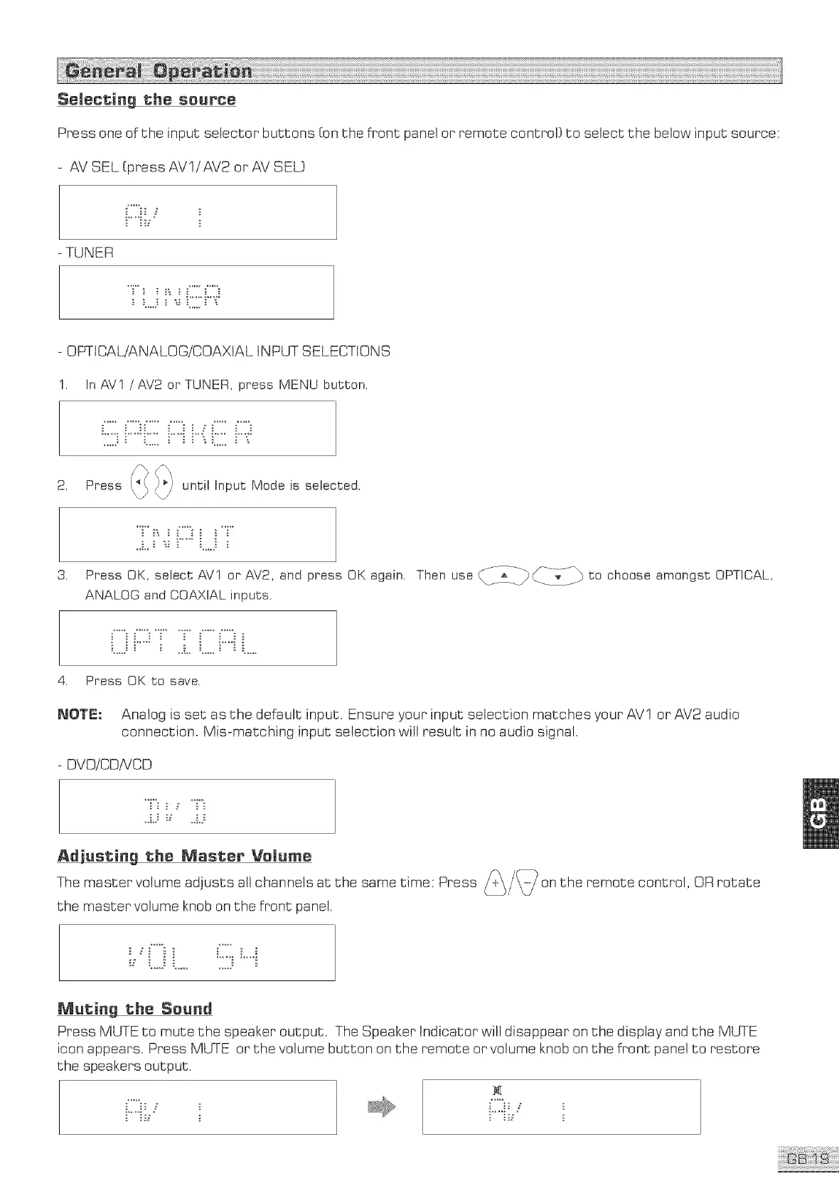 OPTtCAWANALOGiCOAXtAL INPUT SELECTIONS
