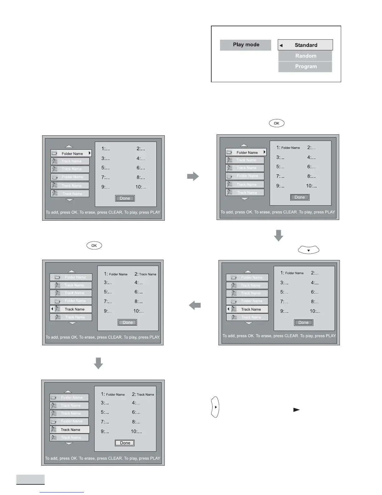 Press OK to set unit playing tracks in default order.