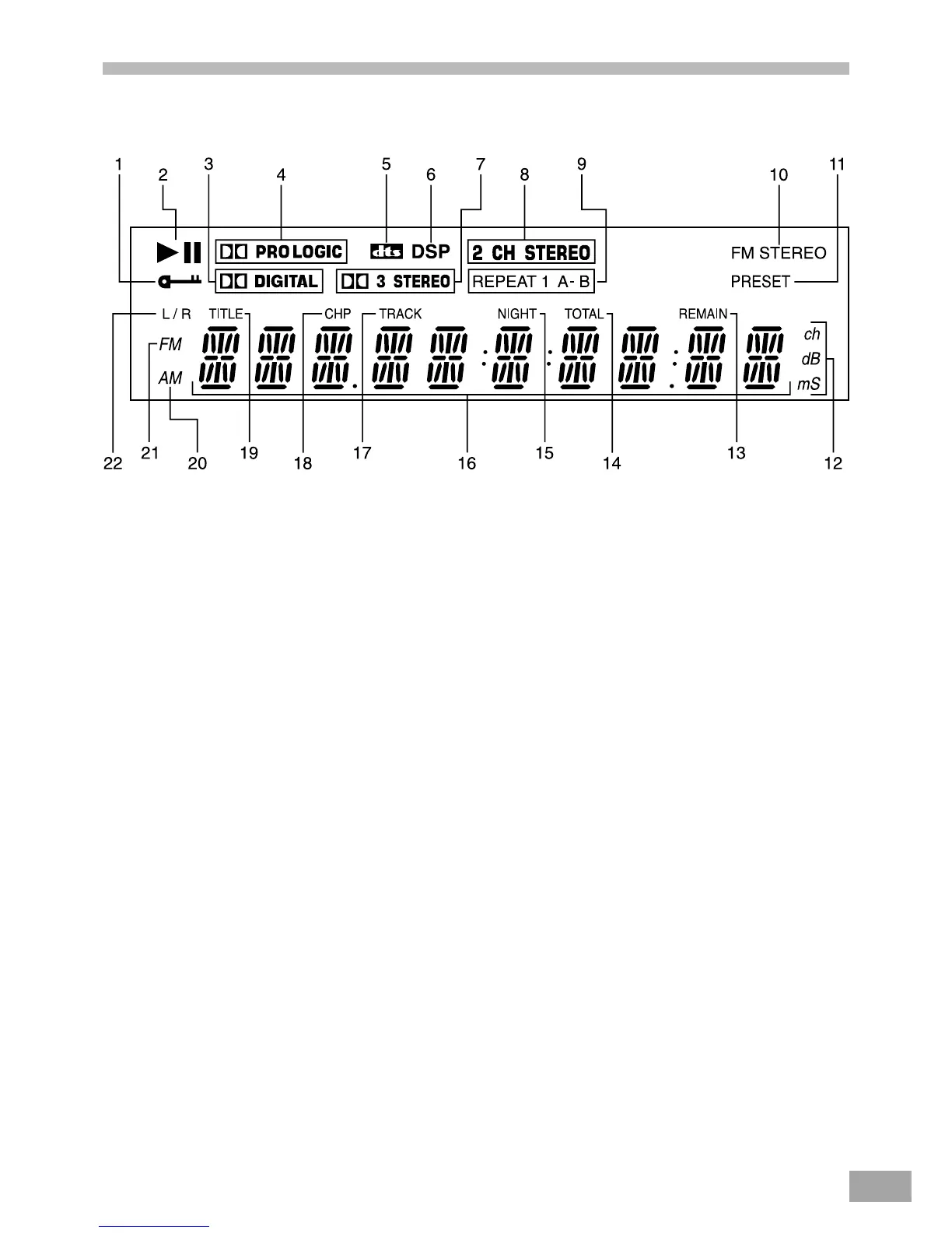 8. 2 Channel Stereo Indicator 19. Title Indicator