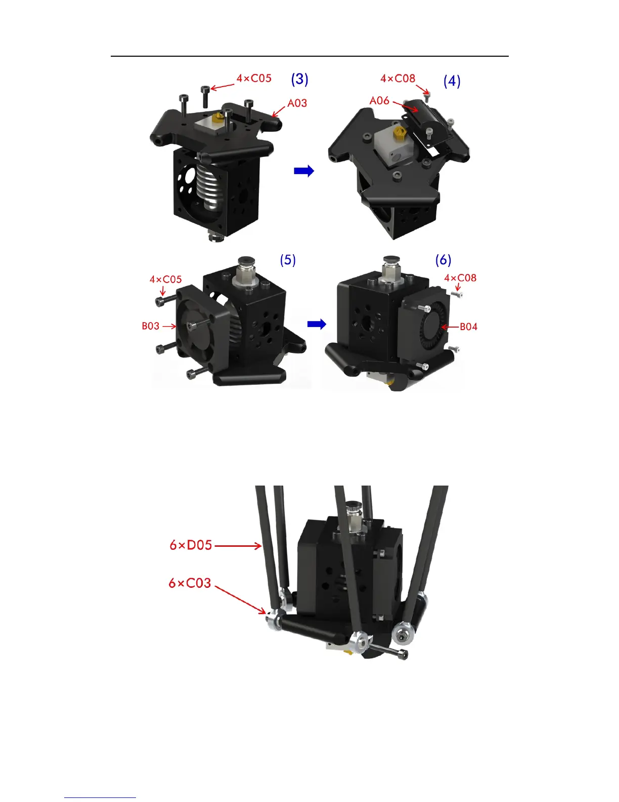 Step 3. Fix 6 carbon fiber tubes (CFT, D05) onto A03 using C03 screws, as shown in Fig. 9.