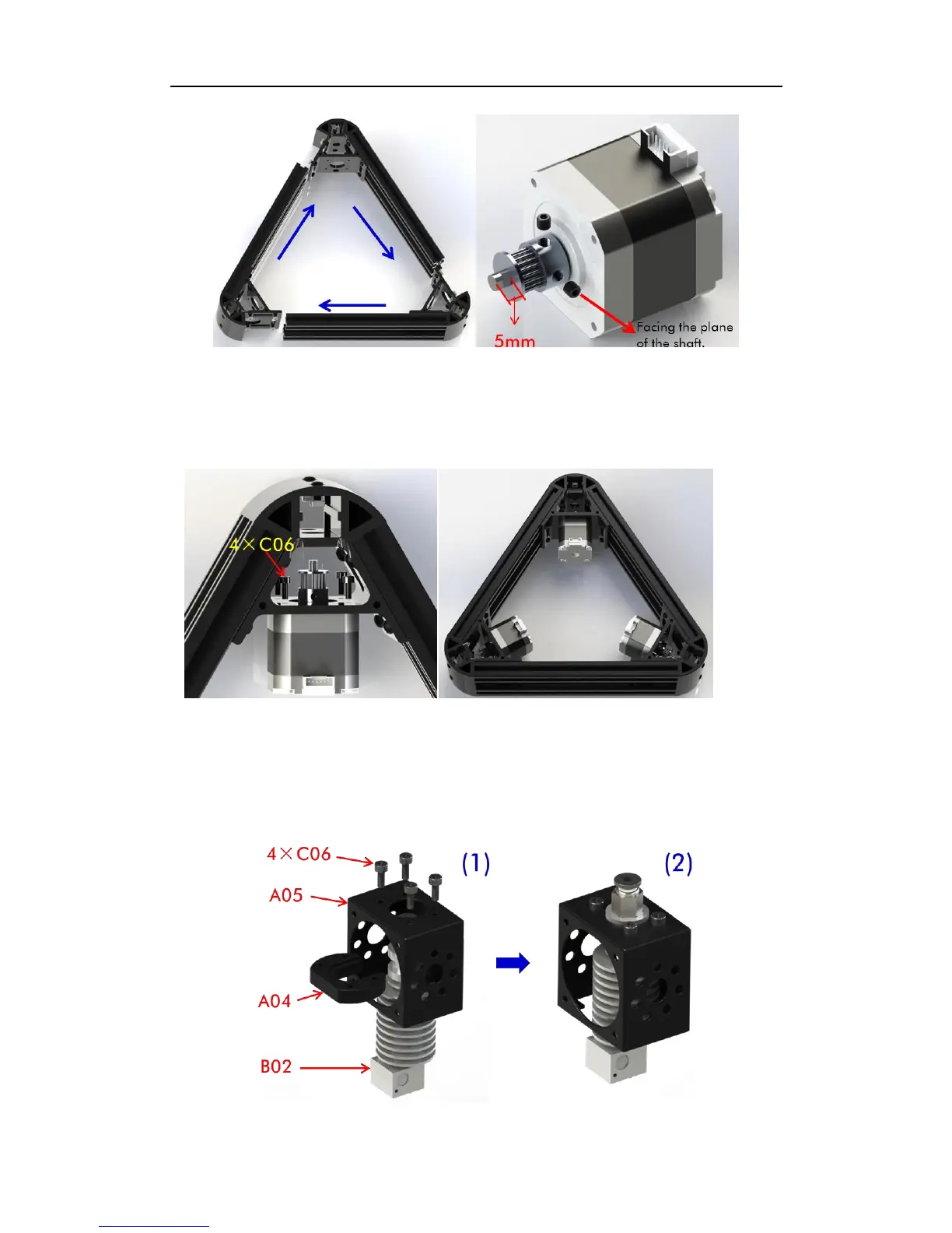 Step 6. Fig.6 shows the assembly of 3 stepper motors. After assembly, using C06 to fix those