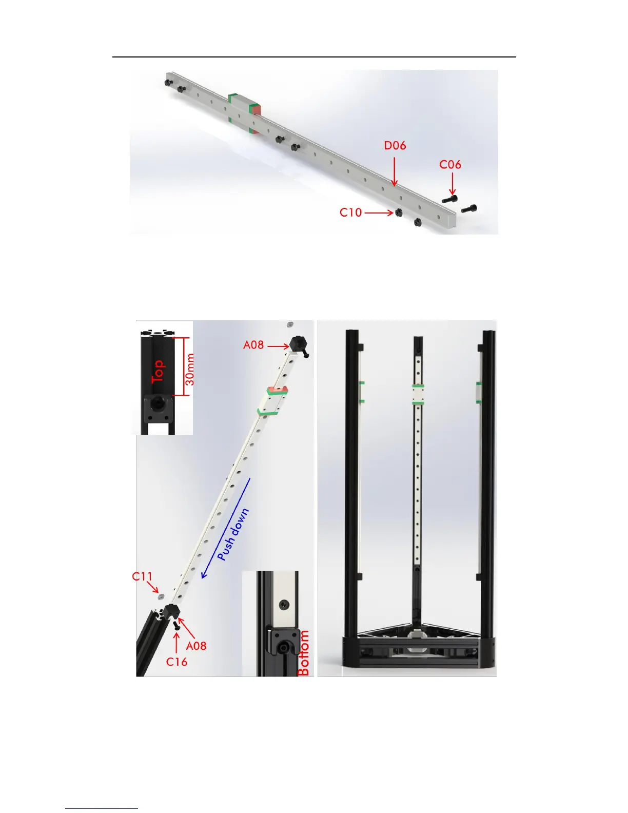 Step 3. Use 4 screws (C06) to fix belt tensioner onto the linear rail as shown on the left of Fig.