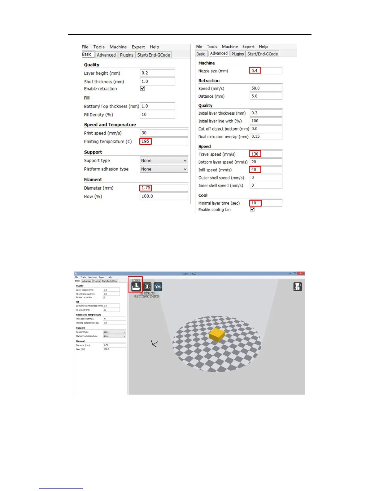 Step 4. Print. To experience the very first print, please load the test model „20× 20× 10‟ and