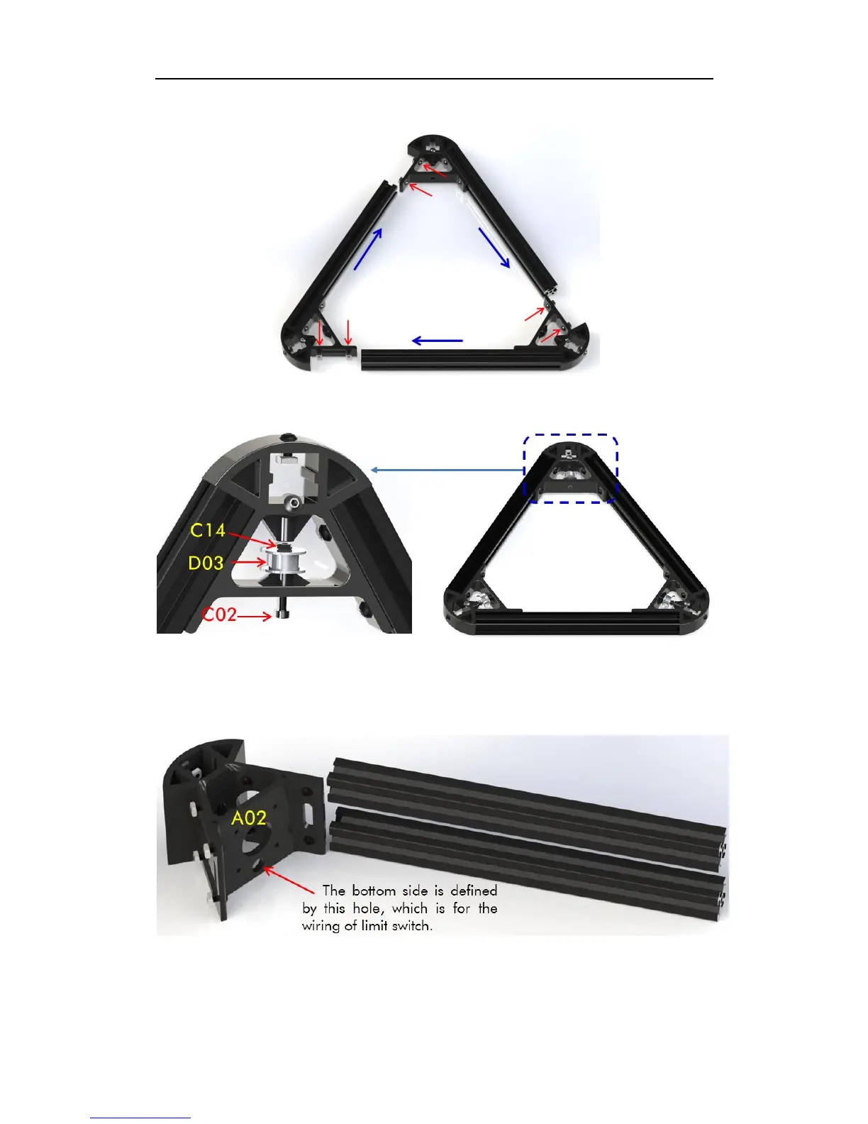 form the bottom triangle and then tighten the corresponding screws, just as Fig. 5 shows.