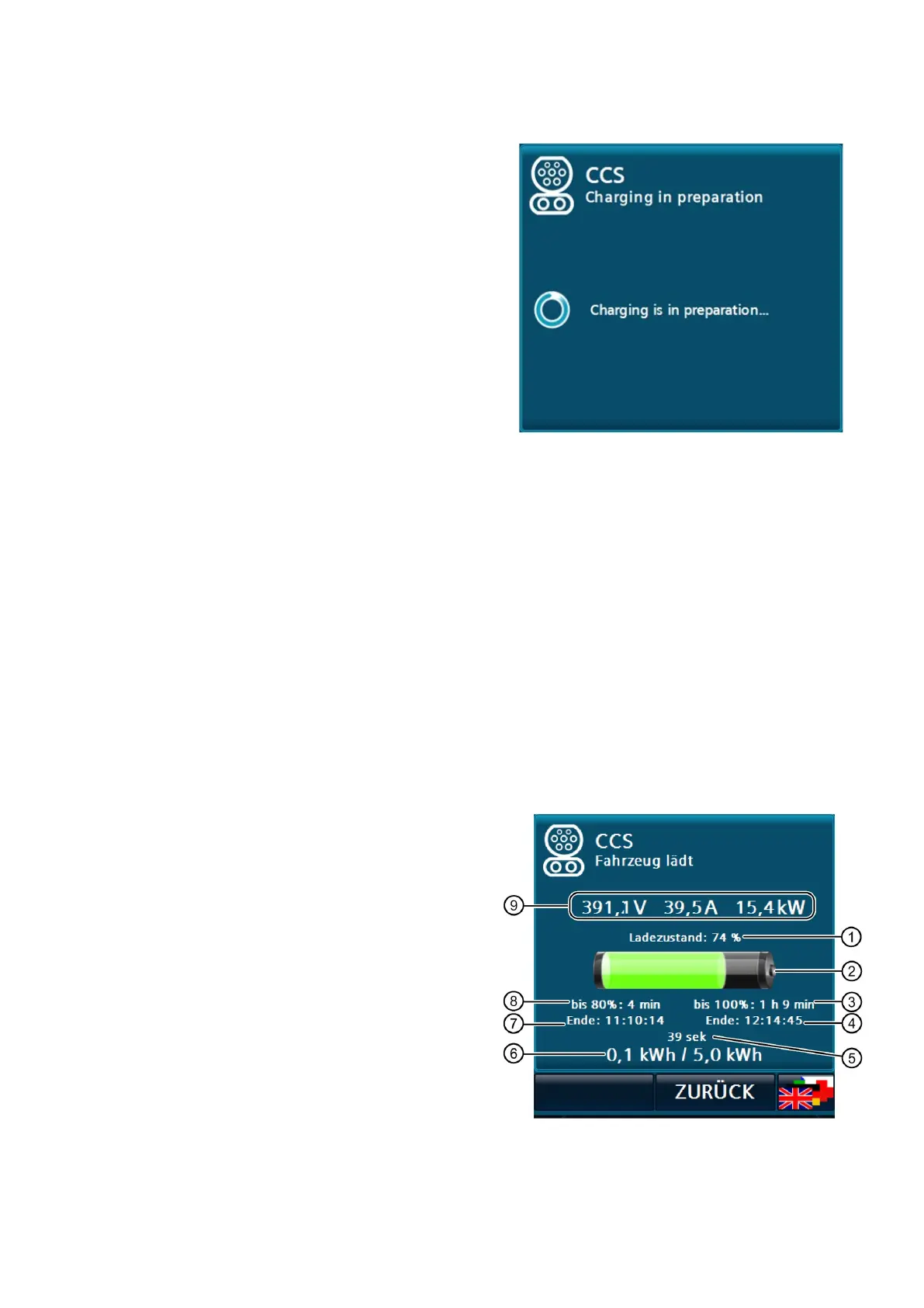 • Charge time/~end time up to 80 % SOC and charge time/~end time up to 100 % SOC.