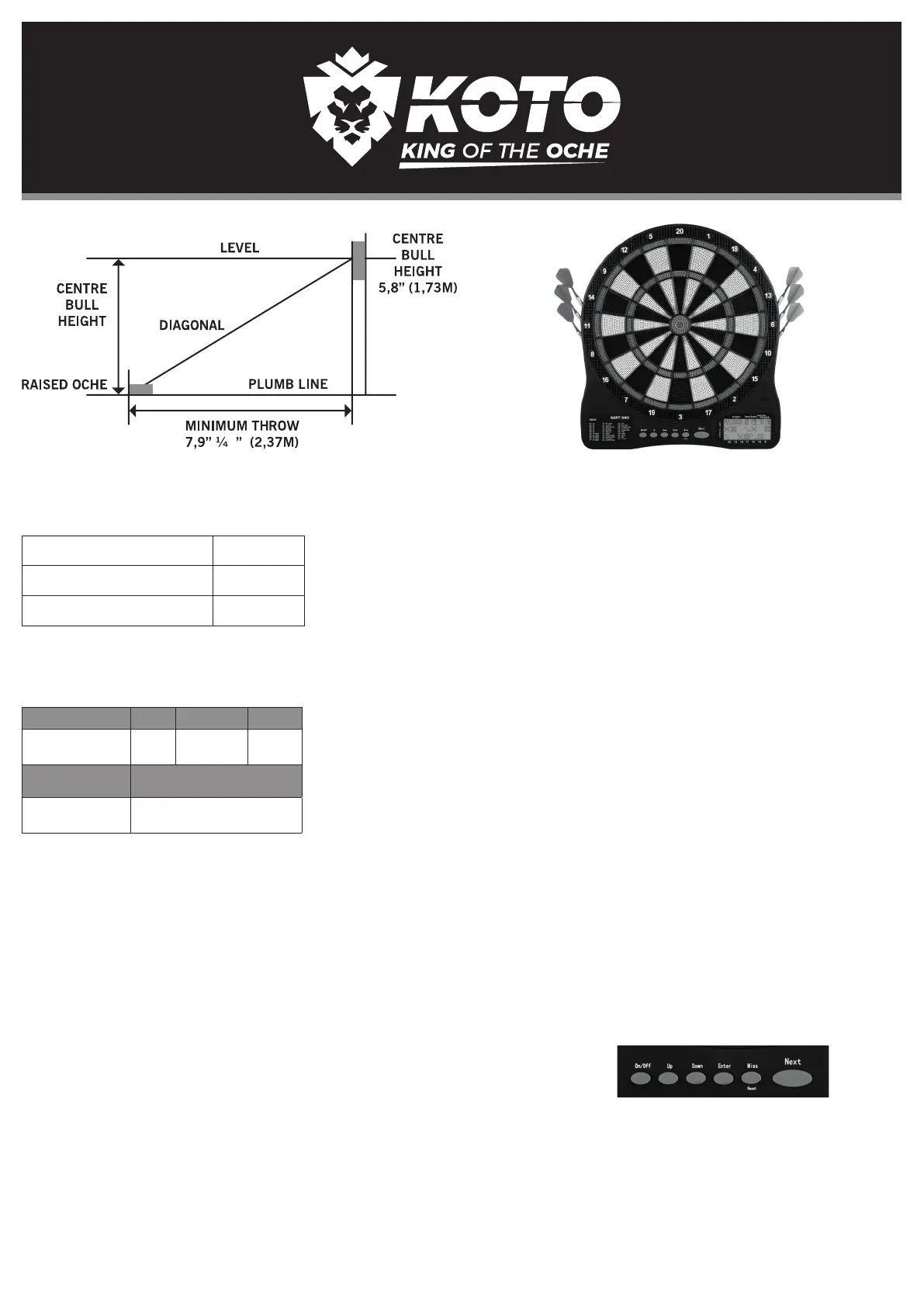 • Always throw the darts from the advised distance of
