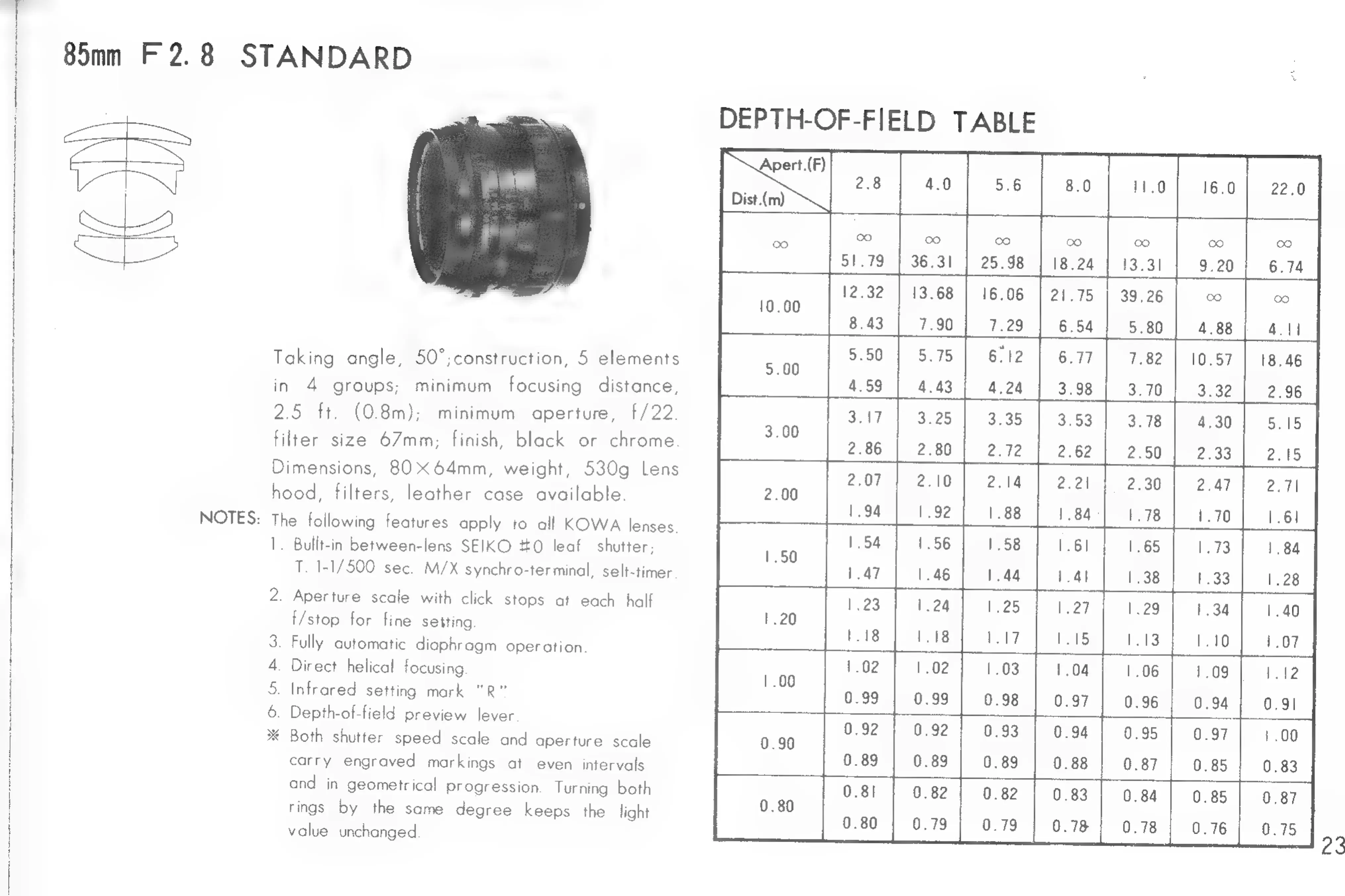 Kowa SIX Version II - Kowa Six 85 mm F2.8 Standard Lens