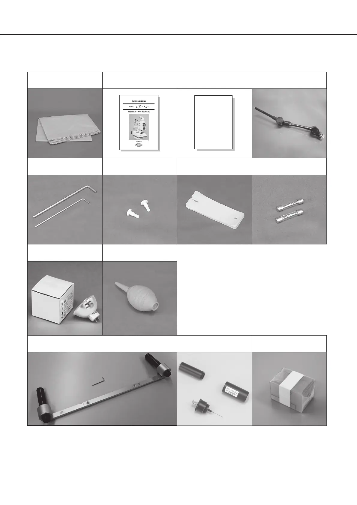 Hexagon wrench:2 pcs. Pin: 2 pcs. Chin rest paper: 1 set Fuse: 2 pcs.