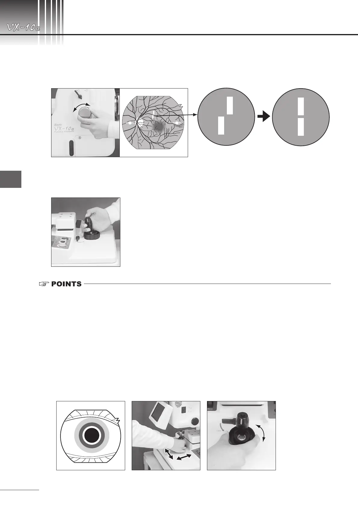 a) While looking into the cornea of the examined eye directly from the side of objective lens, move the
