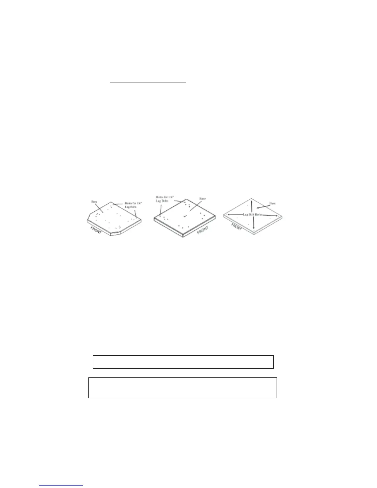 KSH models). Use two 1/4” lag bolts (not supplied) in these holes to