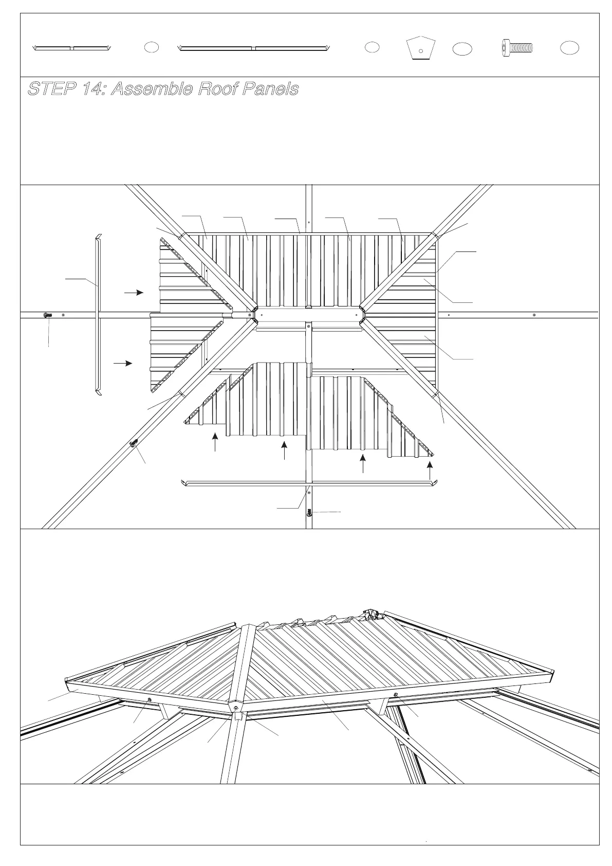 1. Insert Roof Panels (Part v11,v12,v43,v44,v45,v46) to upper roof as shown in diagram.