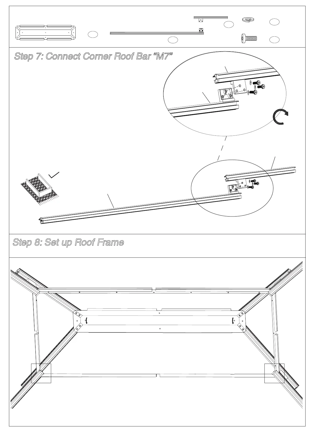 Long Corner Roof Bar (Part M6) using screws 1# and