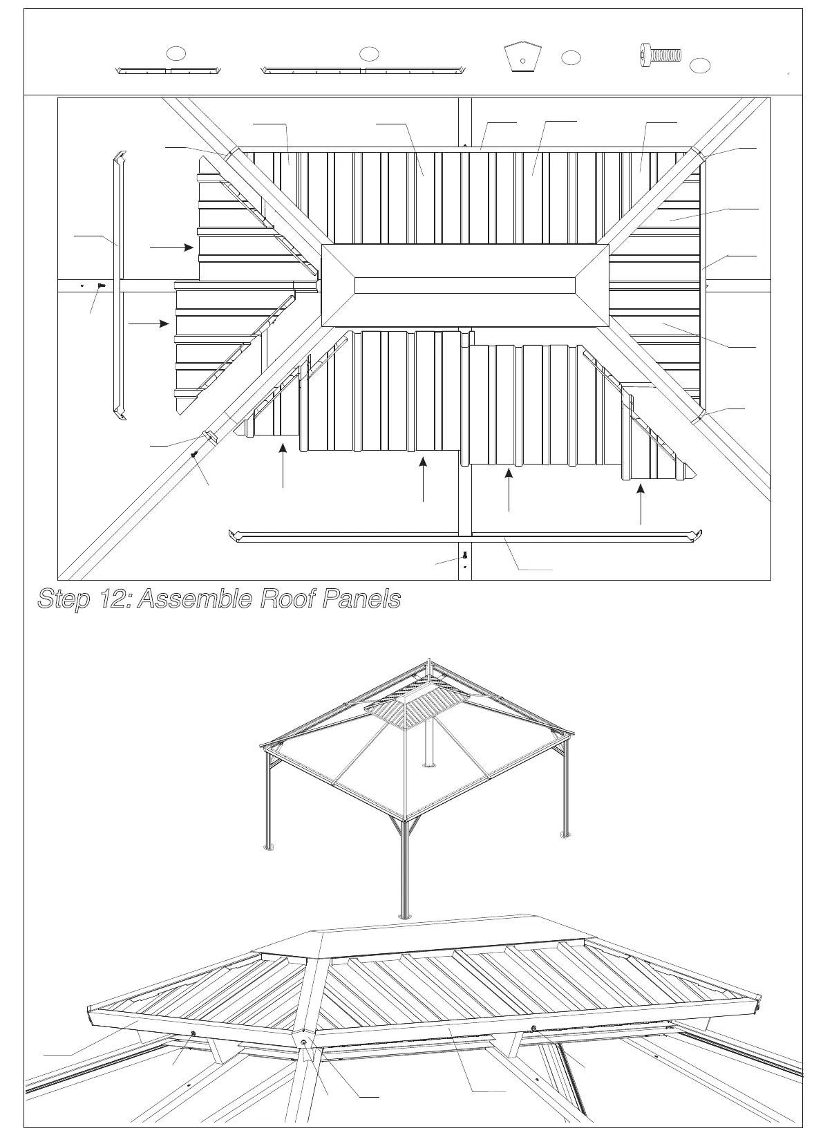1. Push the Roof Panels (Part V11, V12, V43, V44, V45, V46) to upper roof as shown in the diagram.