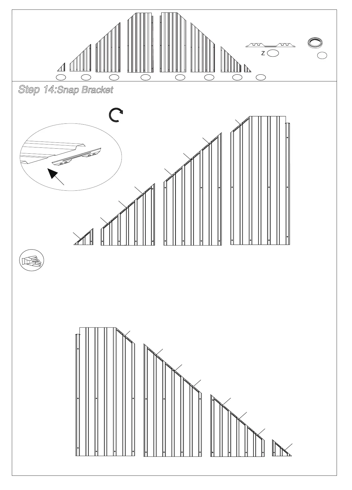 Snap brackets (Part Z) to roof panel edges as shown in diagram.