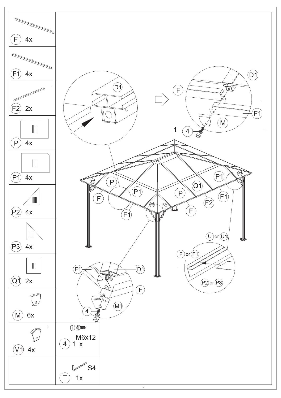 Insert Panels (Part P&Part Q1&Part P1) to Roof Bars(Part D&Part D1)