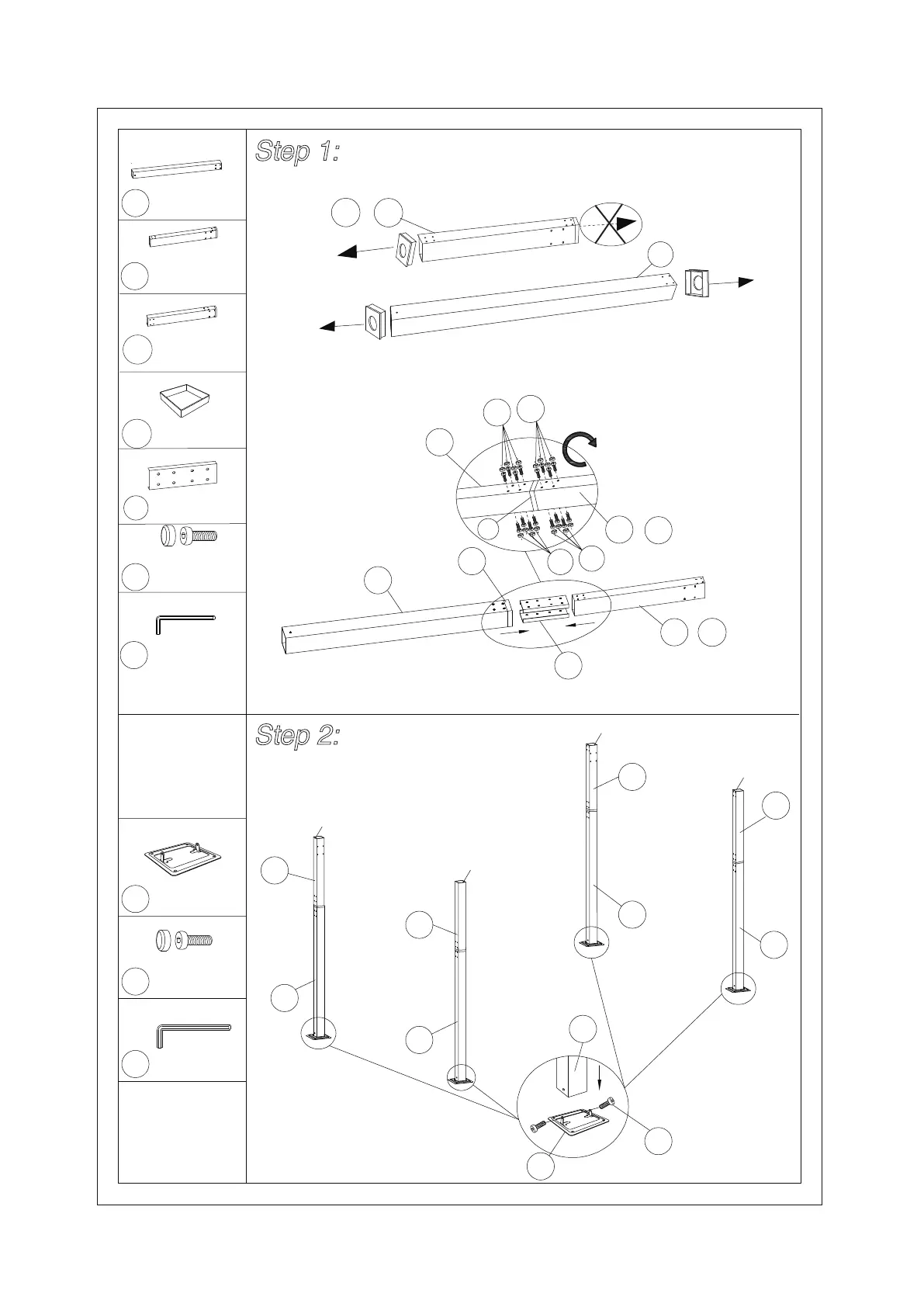 Then, place Part X on the four poles (Part A) and connect A and (A1 or A2)