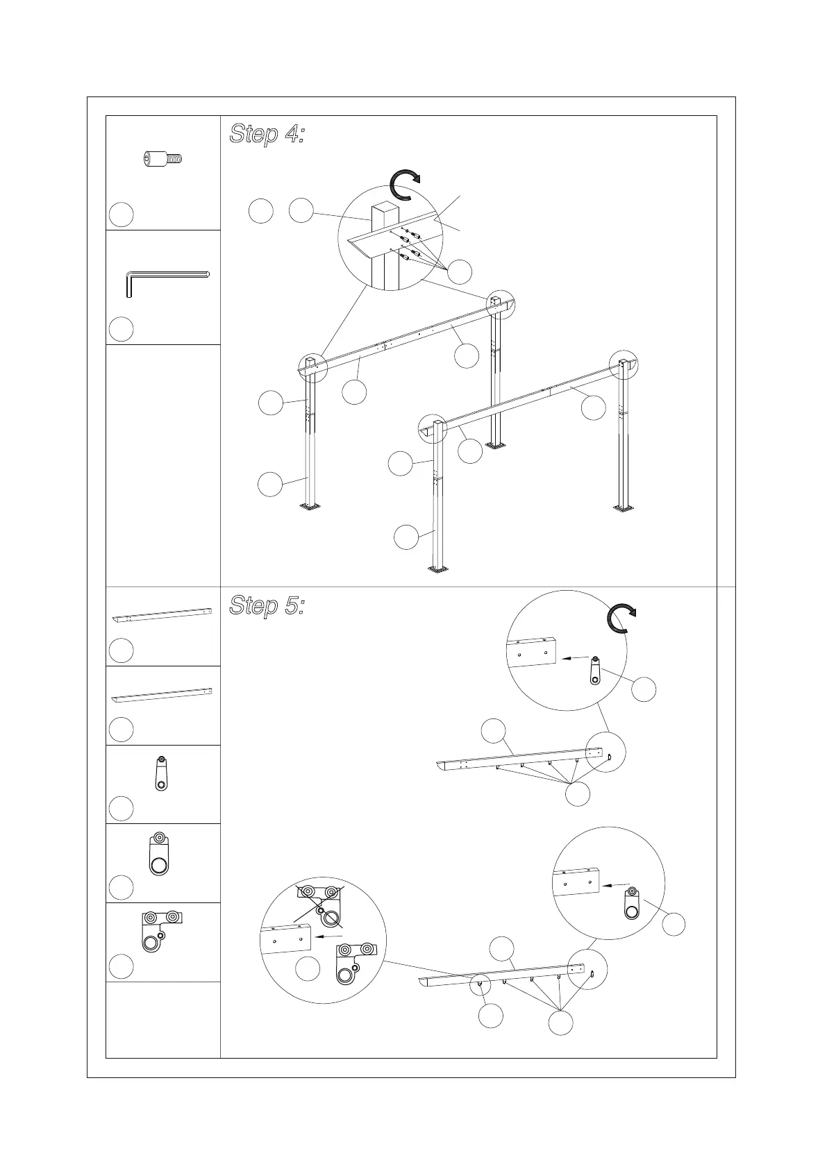 Connect Main Beam 1 and Main Beam 2 to the four Poles using Bolt M.