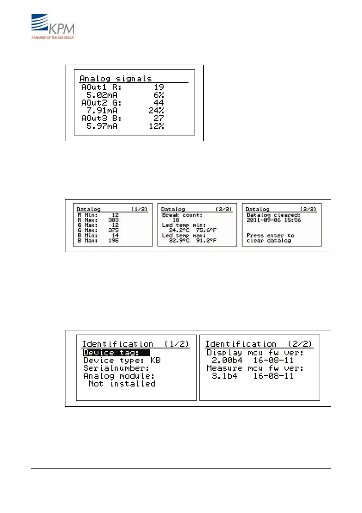 Contains measured minimum and maximum signals and monitored internal temperature data since