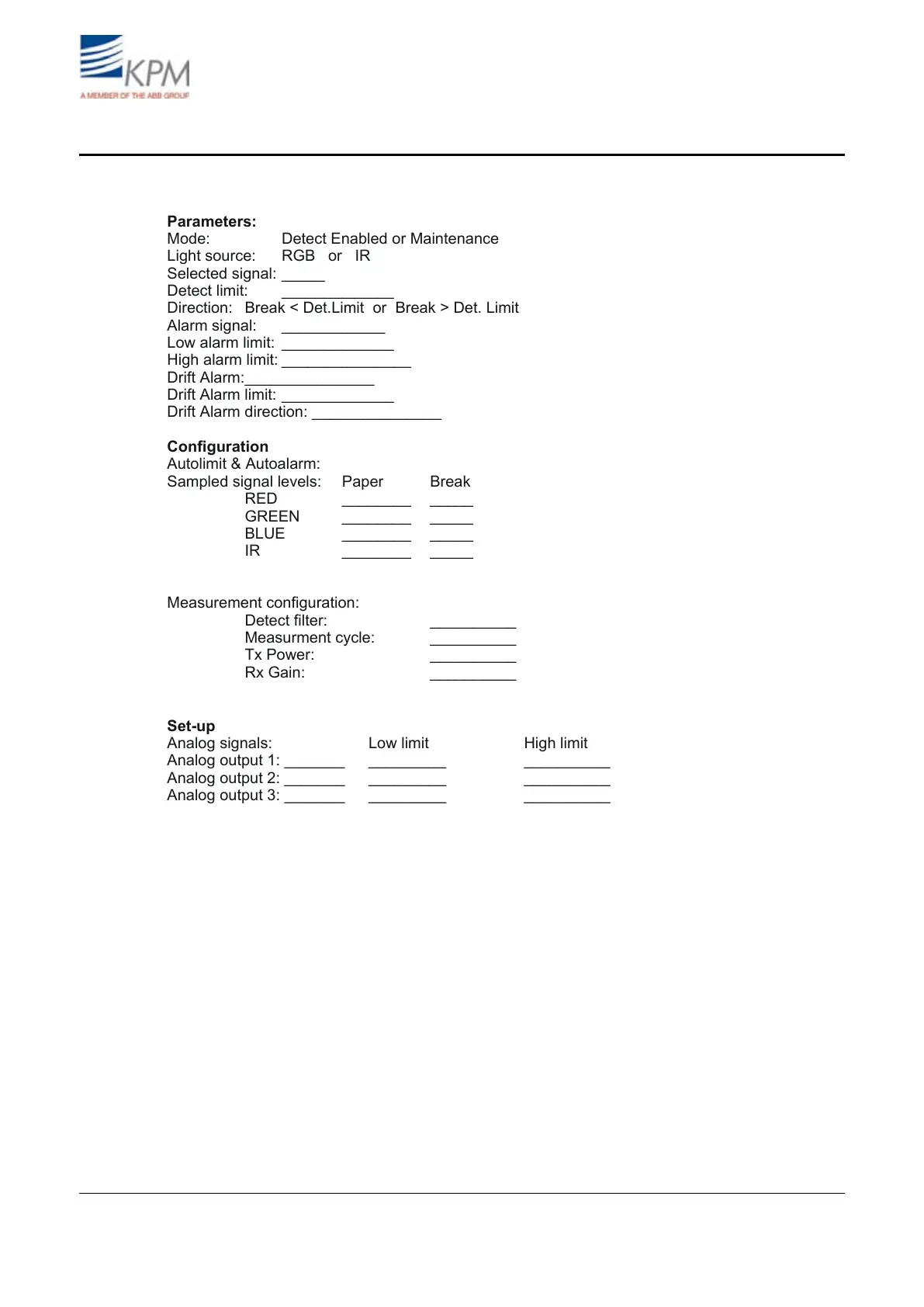High alarm limit: _______________