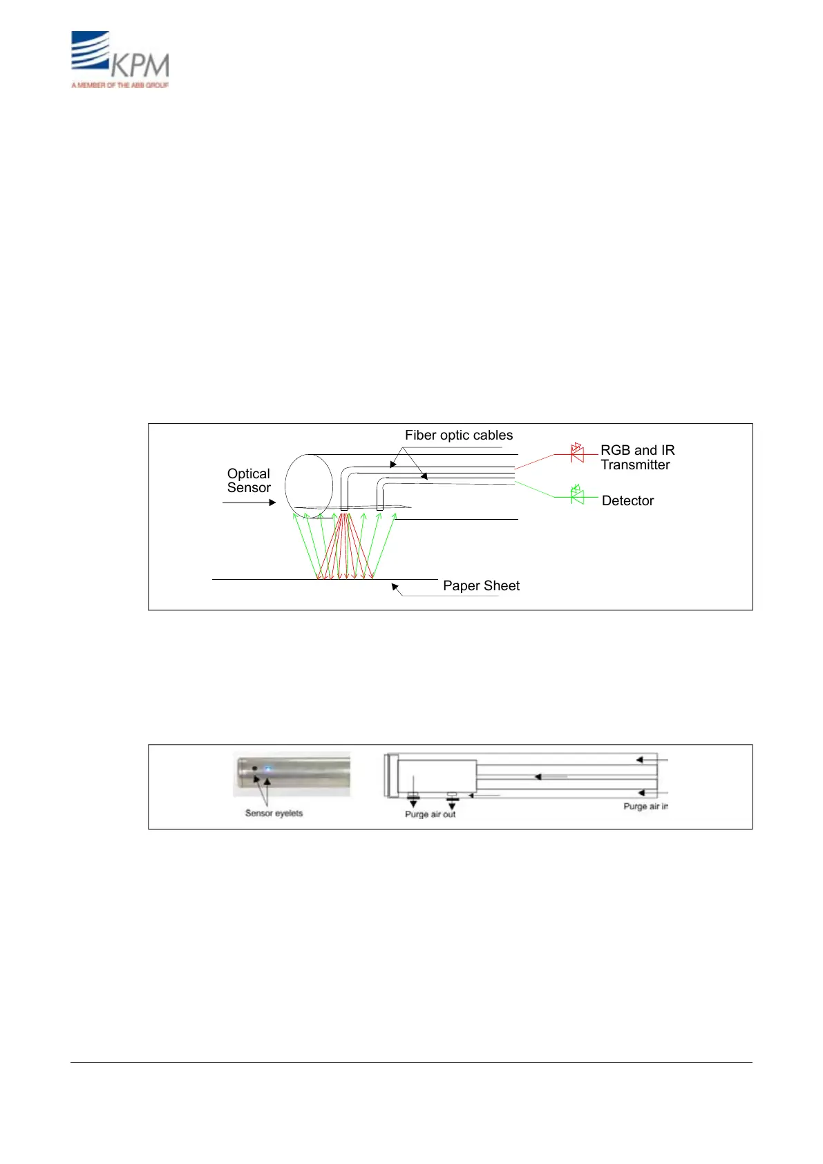 LED (red, green, blue) or IR LED (infrared). The optical sensor is placed above or under the web.