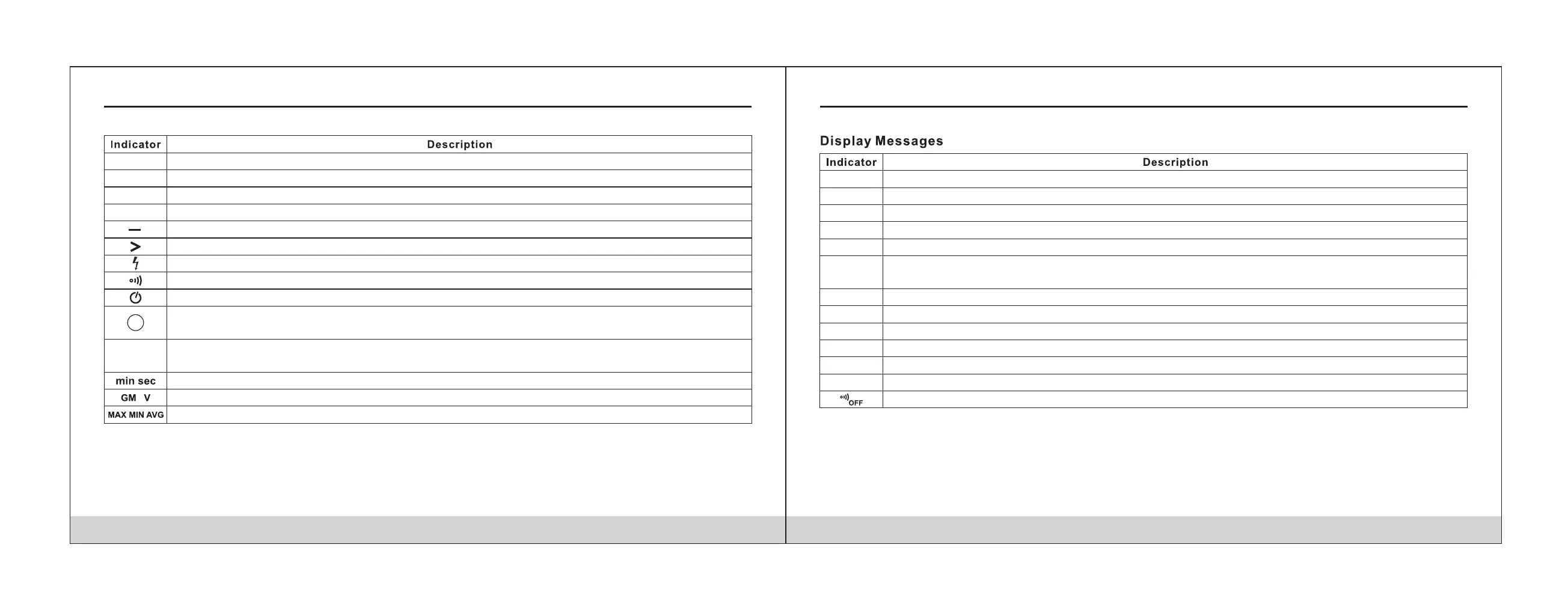Greater symbols, In insulation test mode, indicates the measure value overflow.