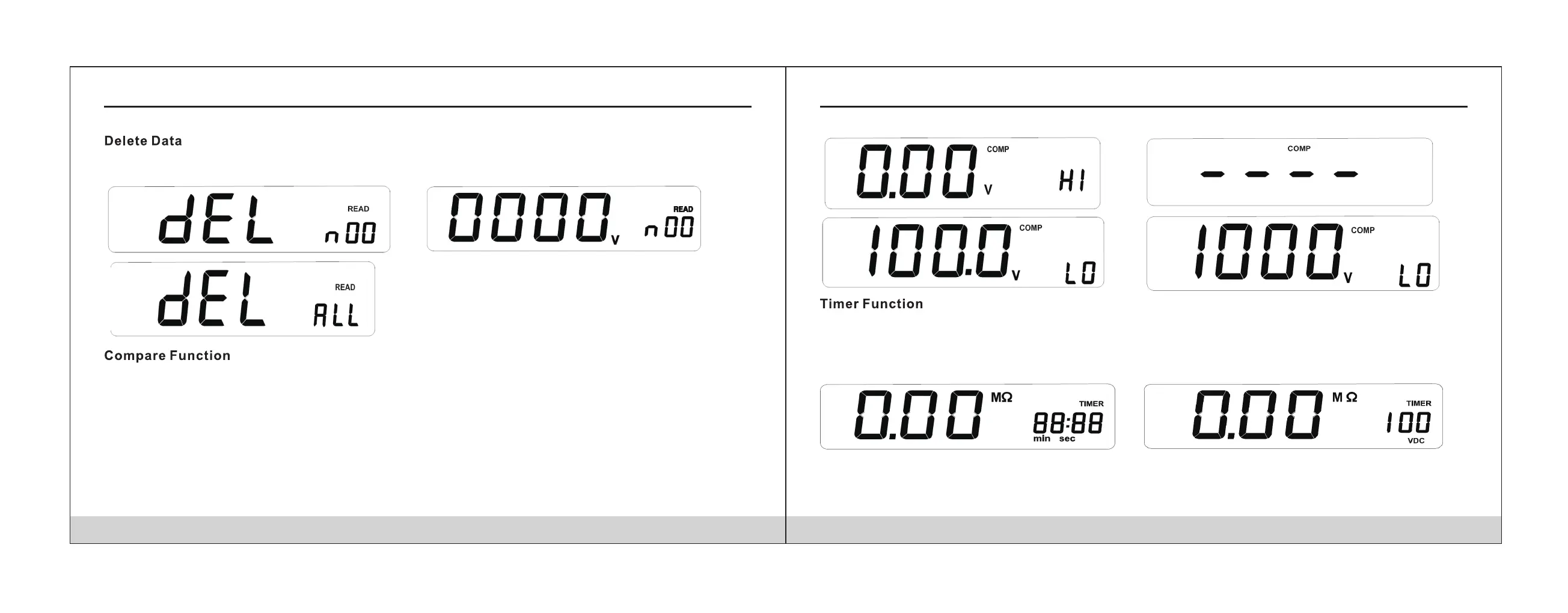Press COMP button will active compare function, meter display ‘COMP’, when the preset upper lim