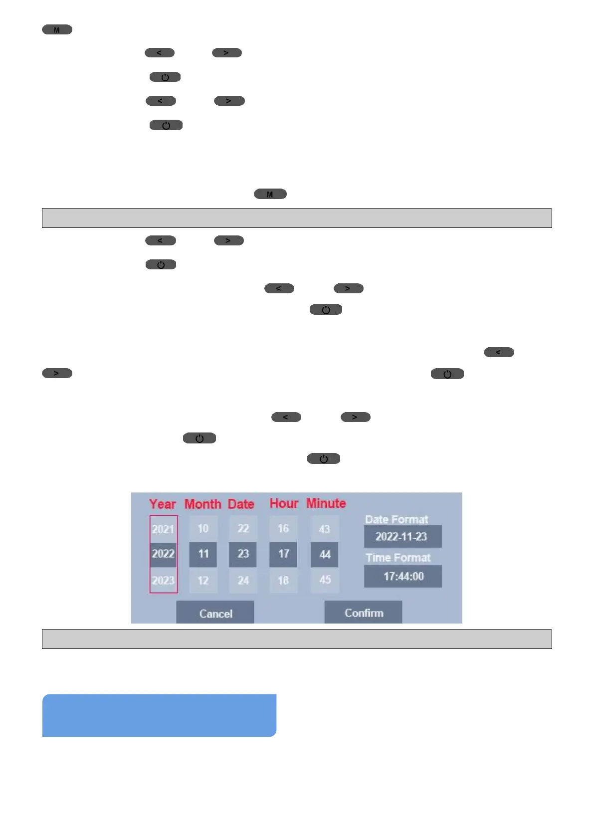 Short press (UP)/ (Down) Button to navigate to “Date/Time”;