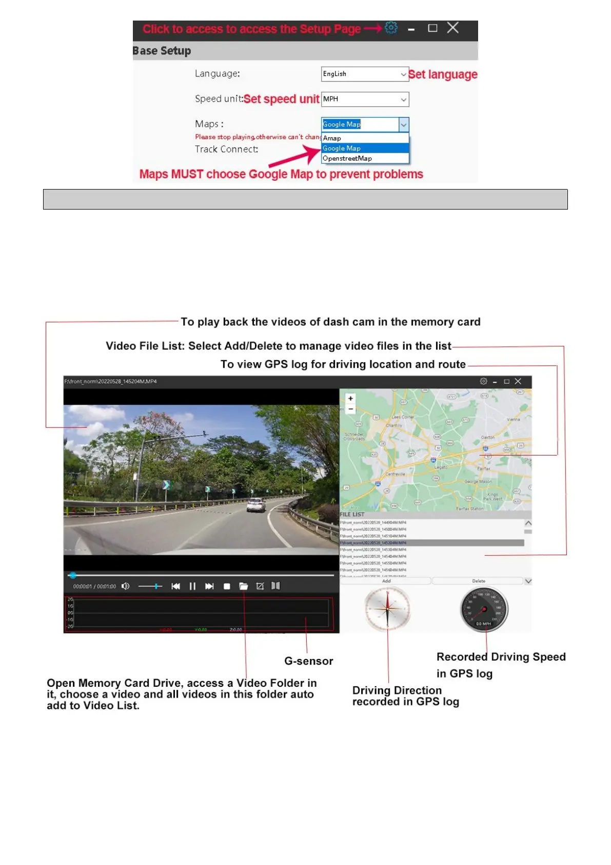 to view video or GPS logs(driving route and location) on this player.