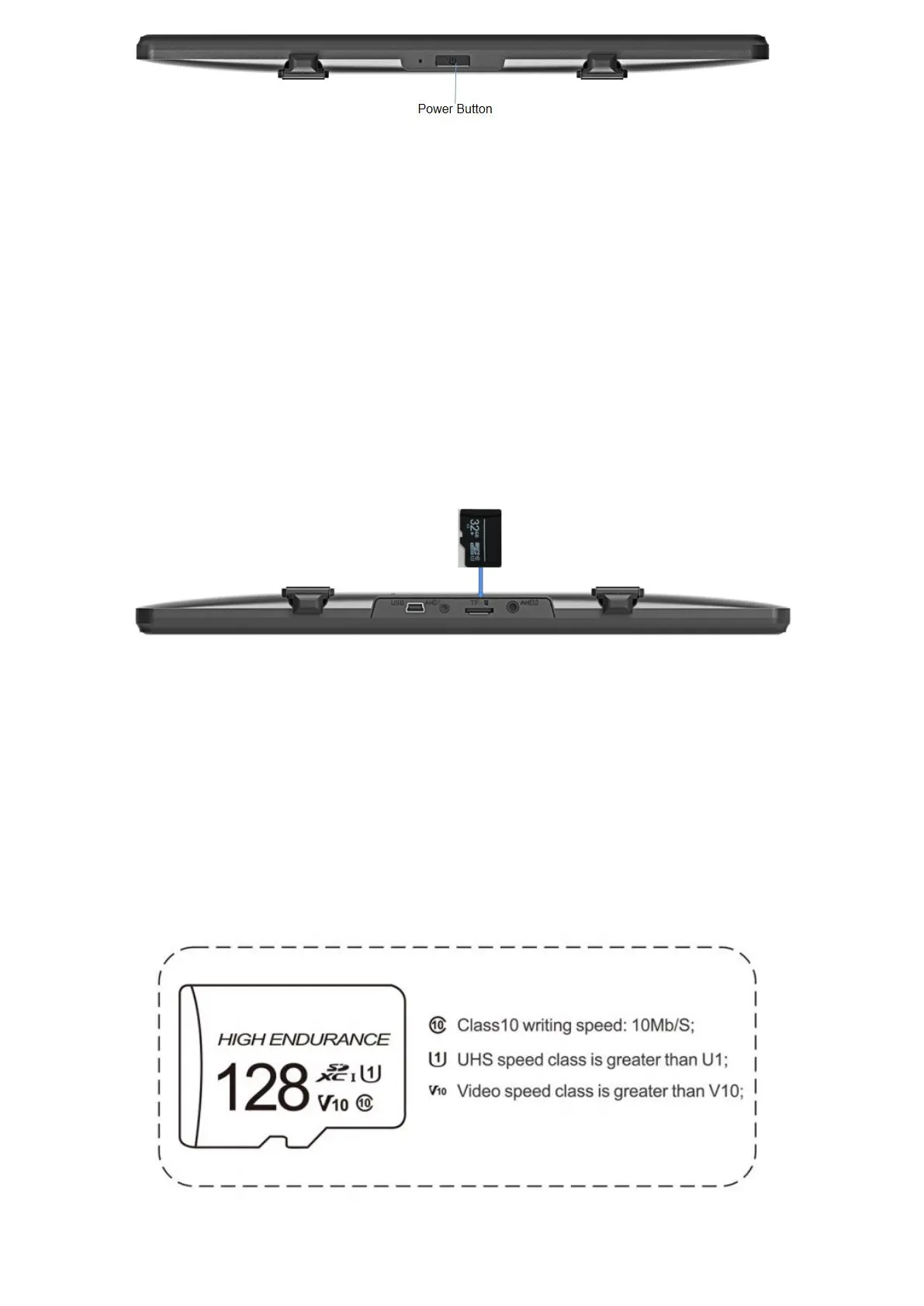 the Micro SD card facing towards the front of the Mirror Side. Then insert the memory card