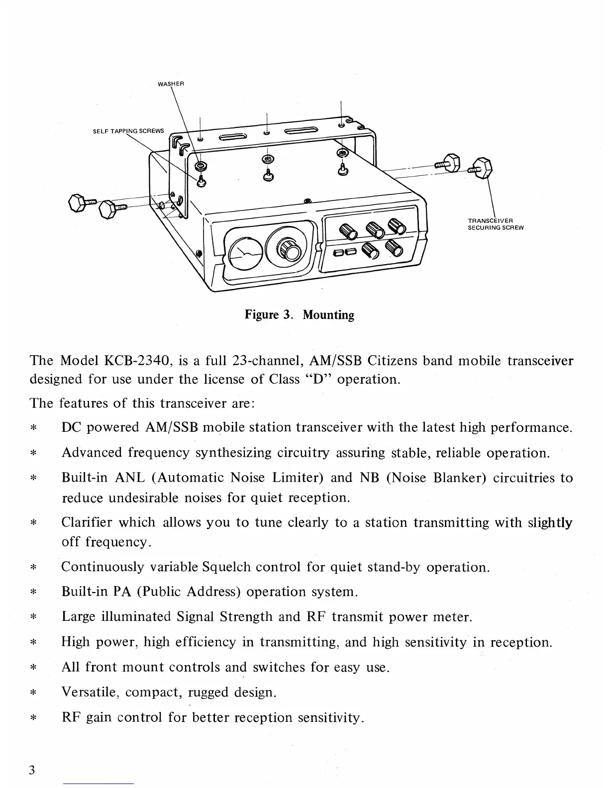 The Model KCB-2340, is a full 23-channel, AM/SSB Citizens band mobile transceiver