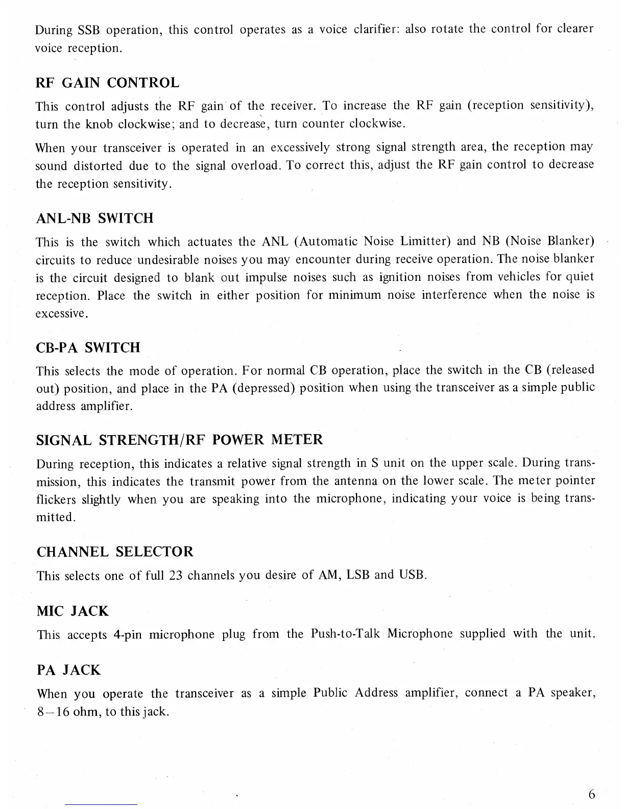 This selects the mode of operation. For normal CB operation, place the switch in the CB (released