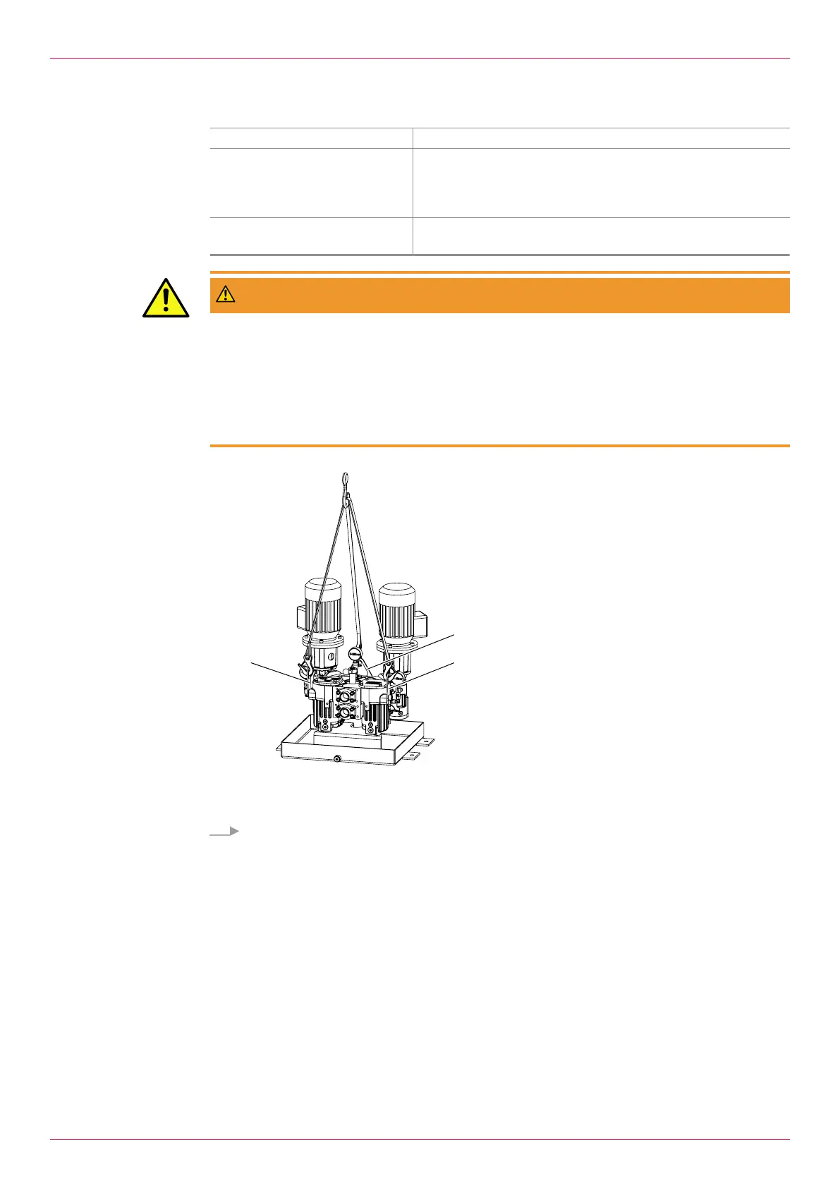 ► Select the lift points for the hoisting equipment in accordance with the centre of gravity and the