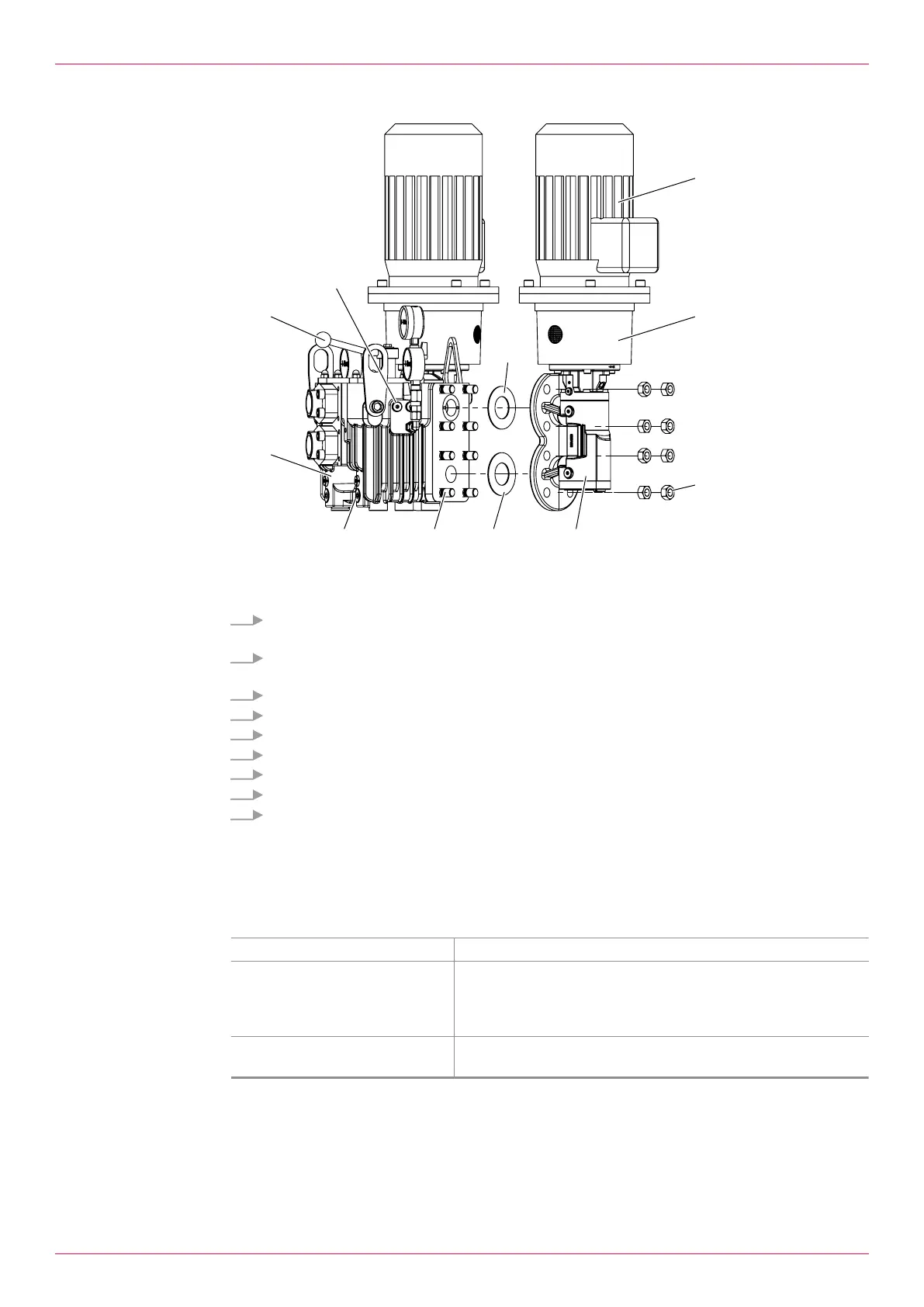 7. Place the new pump on the stud screws8, tighten the hexagon nuts5.