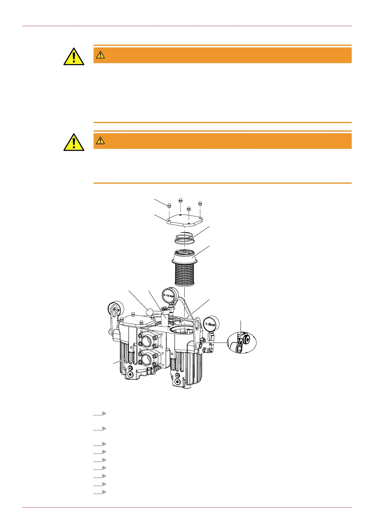 ► Open the screw plug of the vent hole by a max. of 2 rotations in order to reduce the internal pres-