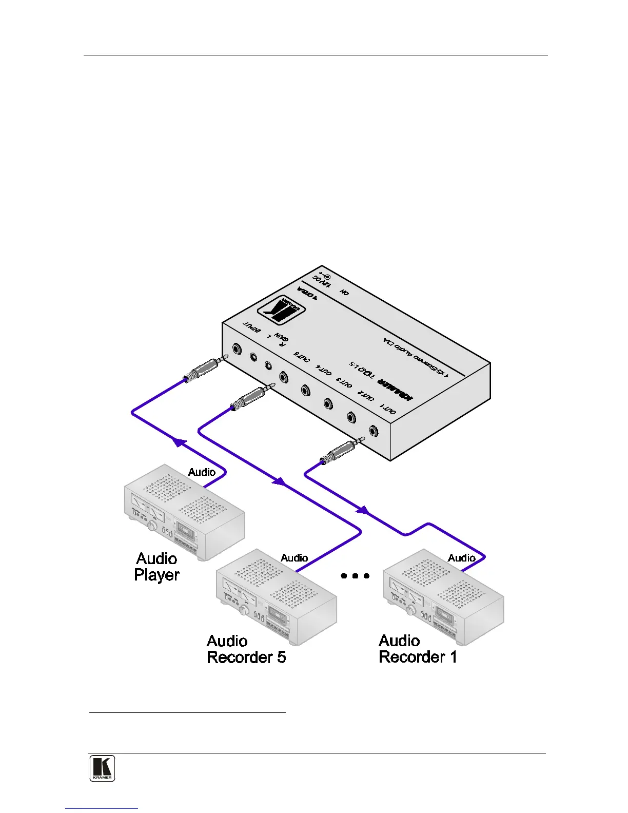 Figure 6: Connecting the 105A 1:5 Stereo Audio DA
