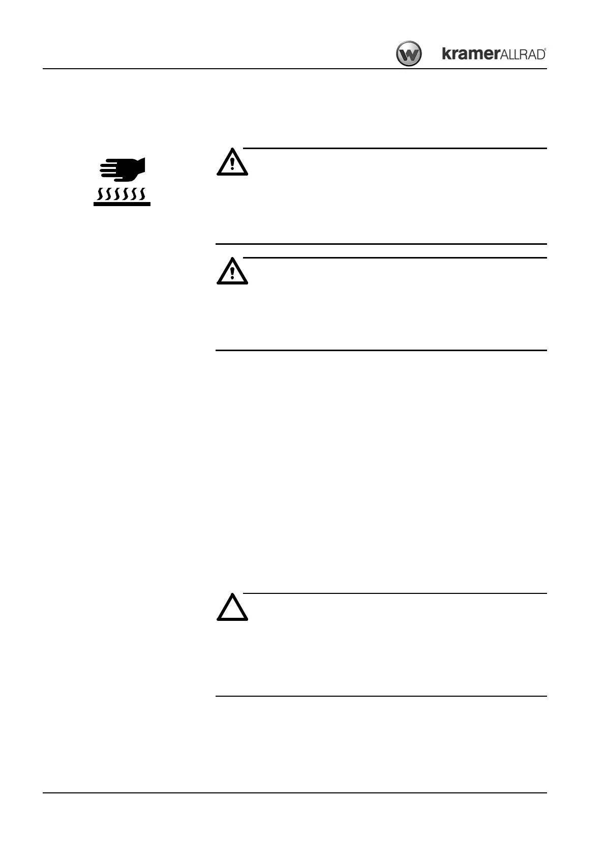 • Release the pressure in all lines carrying hydraulic oil prior to any maintenance and