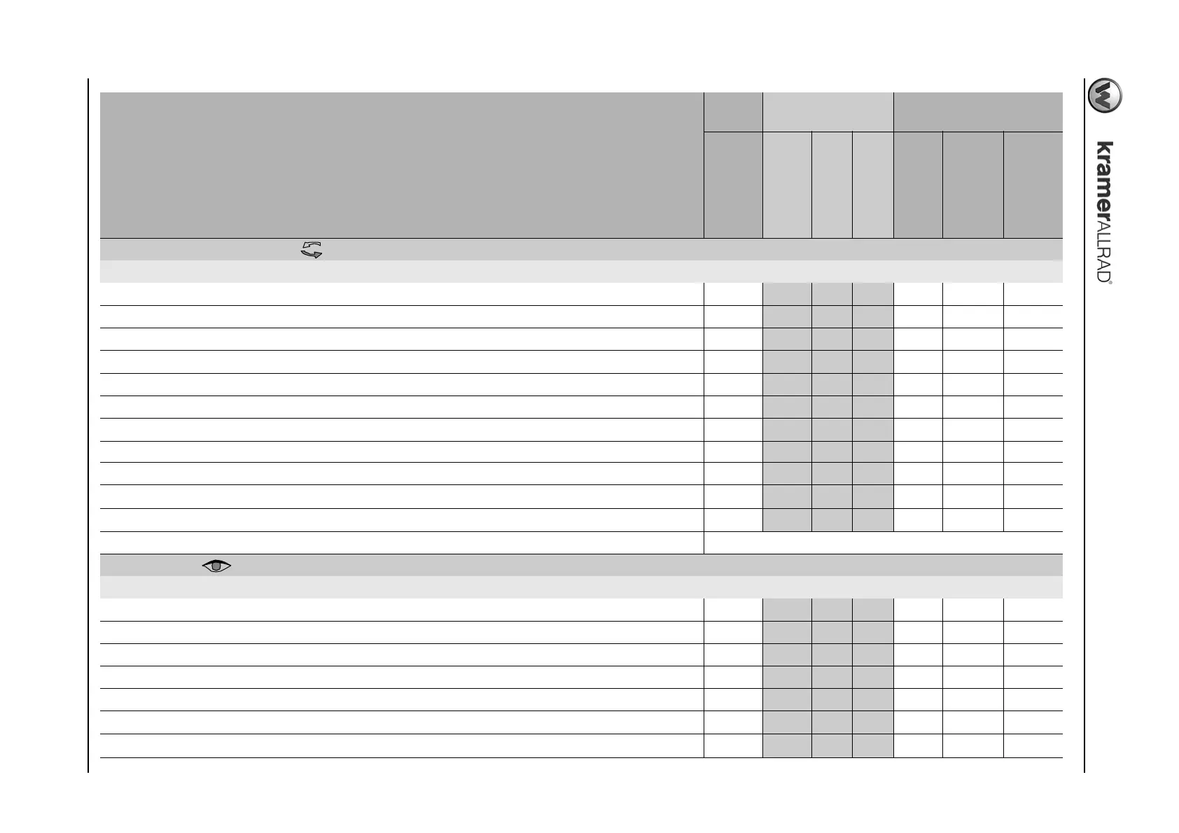 • Gearbox oil in front and rear axle differentials and in rear axle gearbox