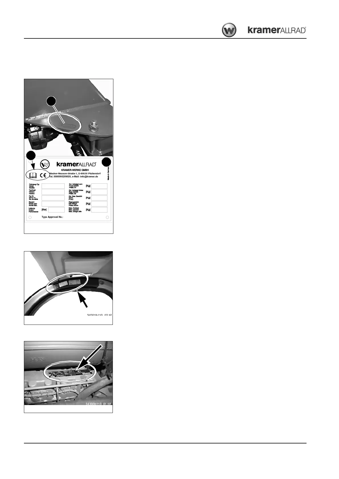 right in driving direction). It is also located on type label B on the machine frame at the