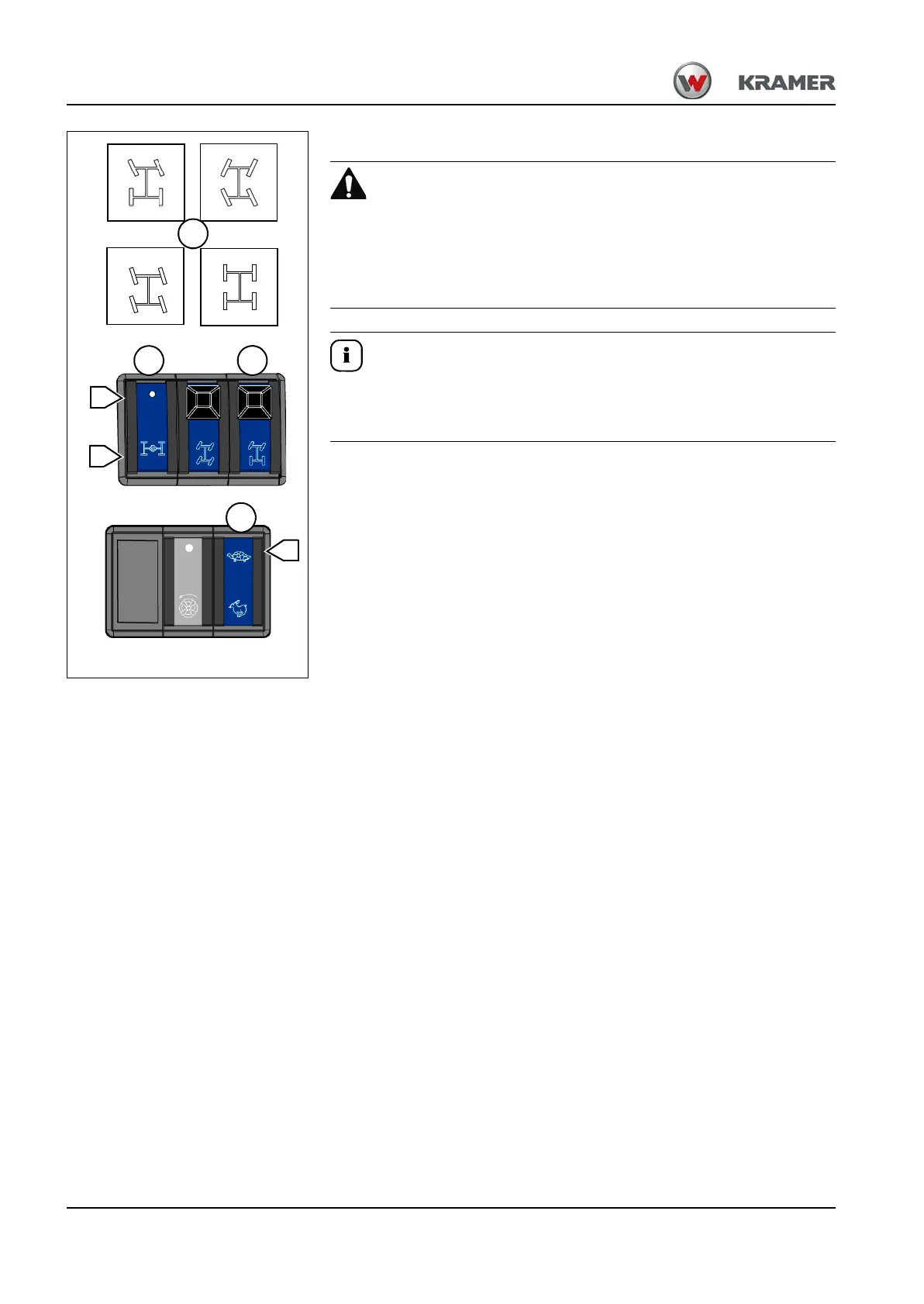 1. Activate all-wheel steering. To do this: slide the lock in toggle switch 54