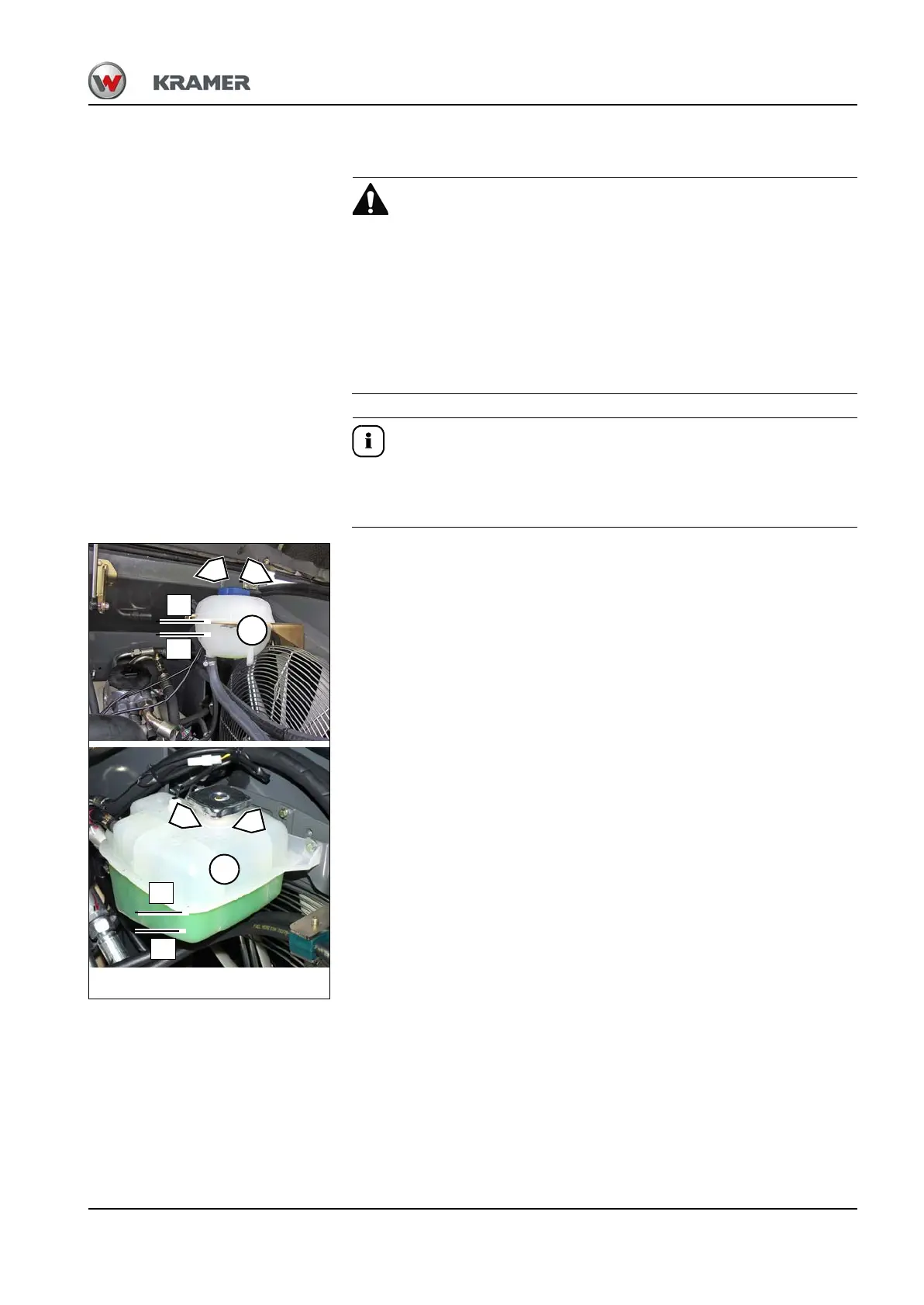 ► Do not open the coolant reservoir if the engine is hot or if the cooling
