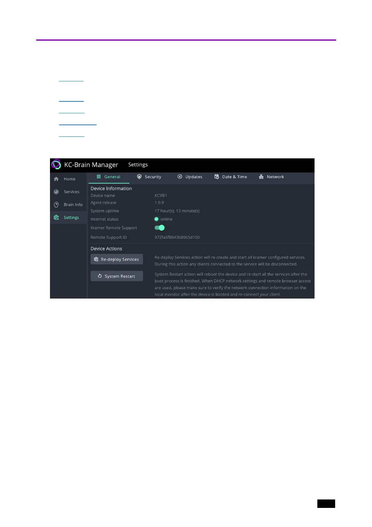 Kramer Remote Support – Slide to the right to enable Kramer Remote Support.
