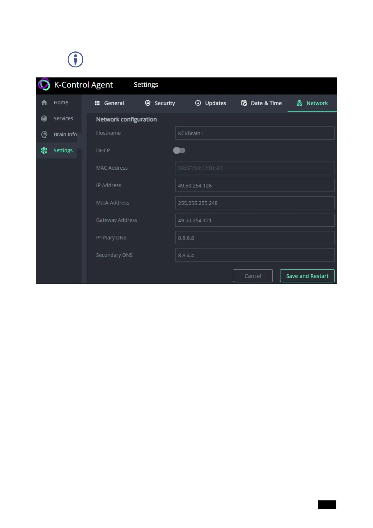 Mask Address – The network subnet to which the KC-Virtual Brain1 belongs.