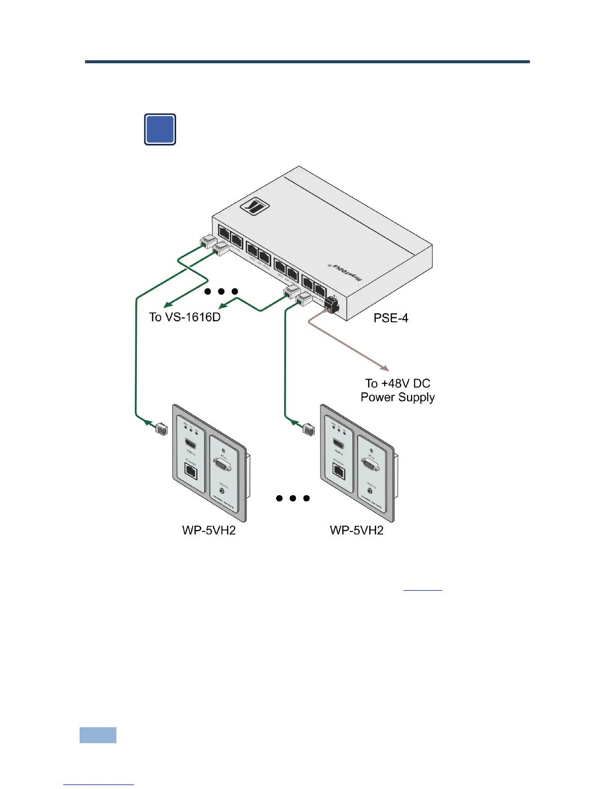 1. Connect the first HDBT transmitter, (for example, the WP-5VH2) to the