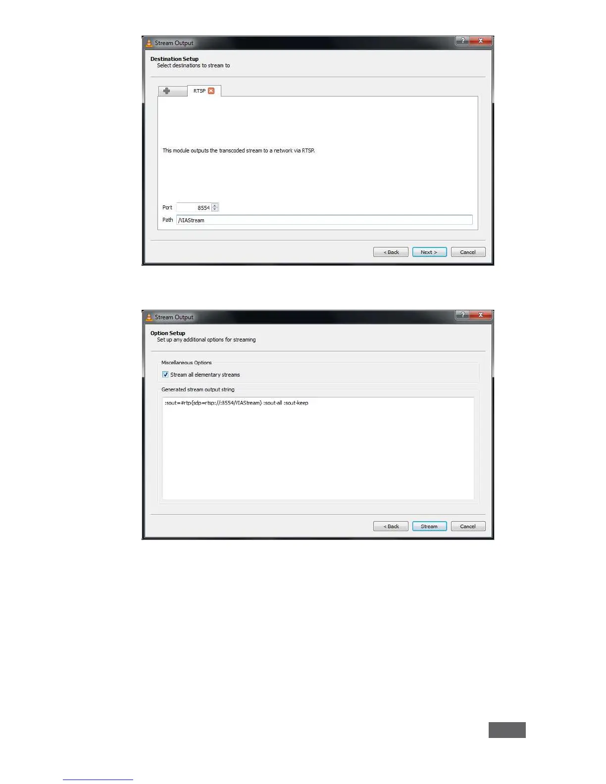 7. Check Stream all elementary streams and click Stream.