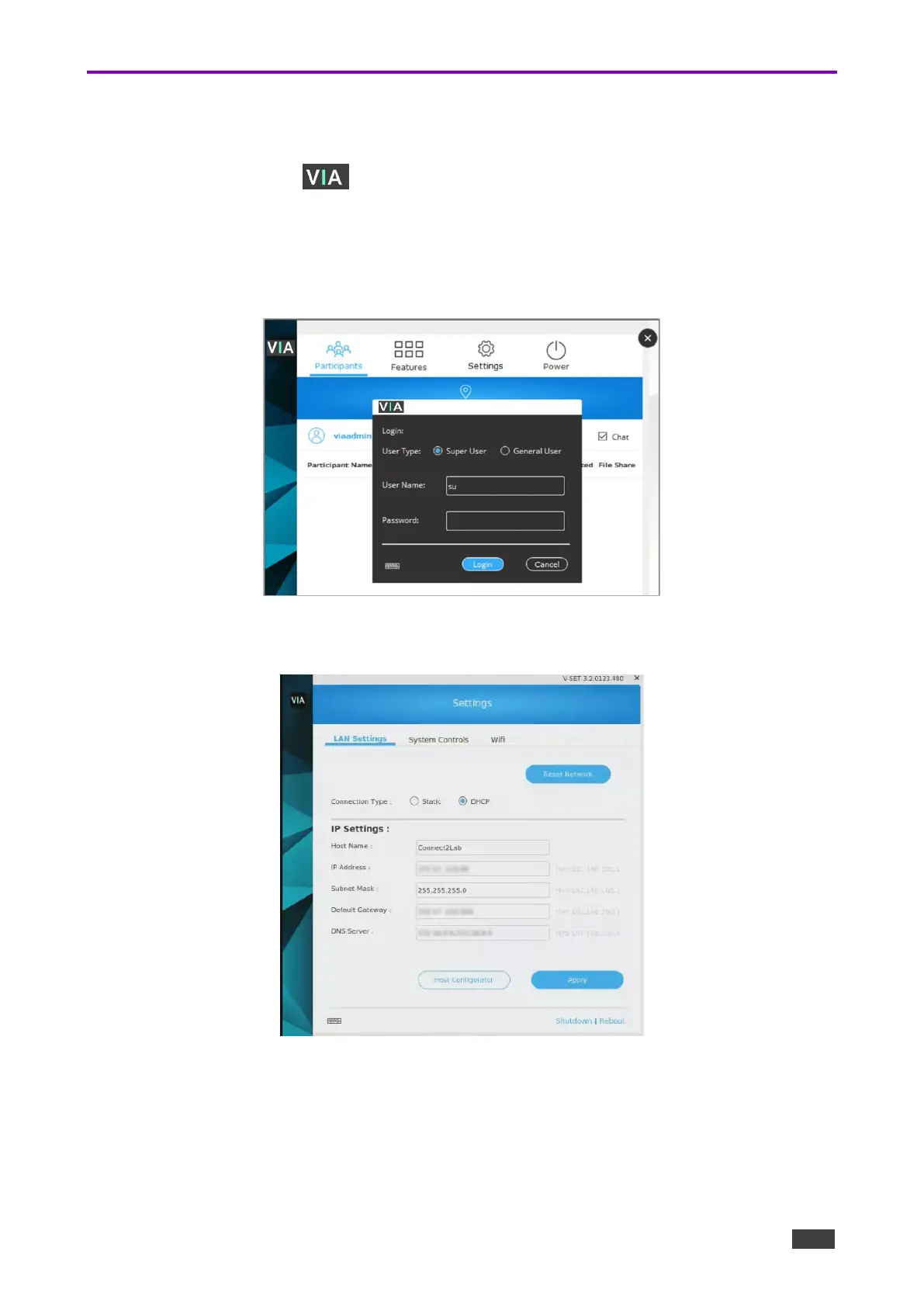 3. Type an administrator username and password (default user name = su, default