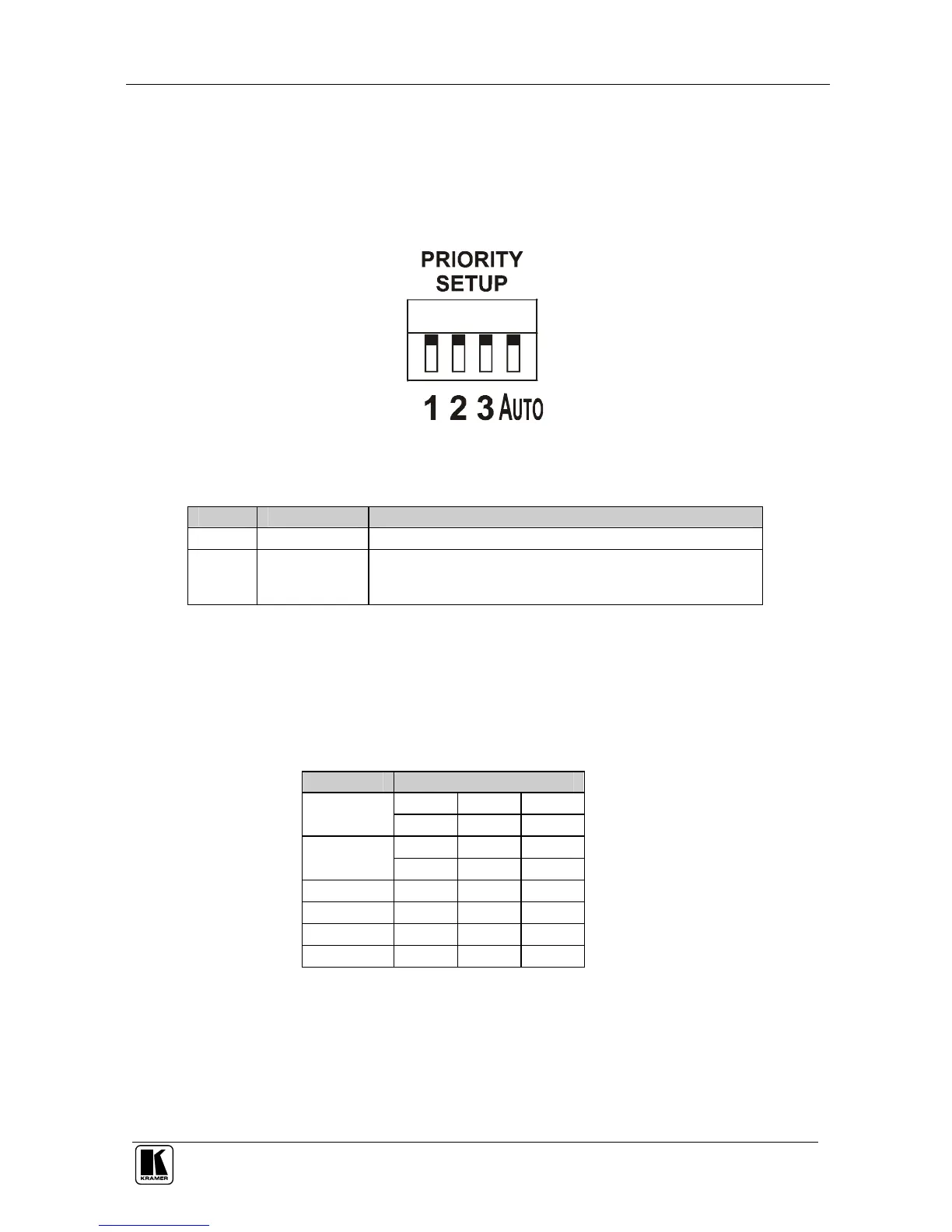 1, 2, 3 Priority setup Set the inputs priority (see Table 4)
