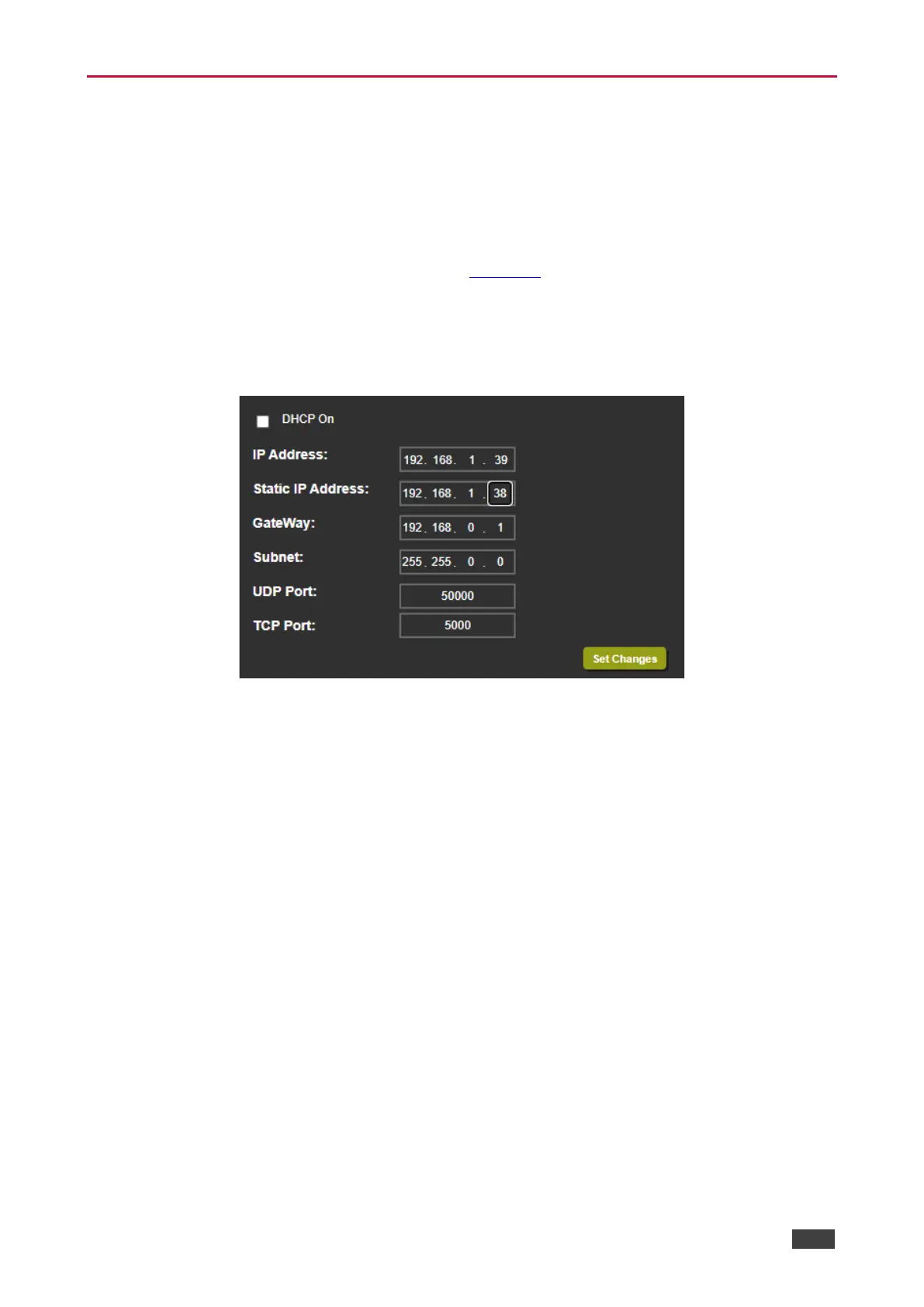 a. In static mode (DHCP On is unchecked), change static Network settings as required: