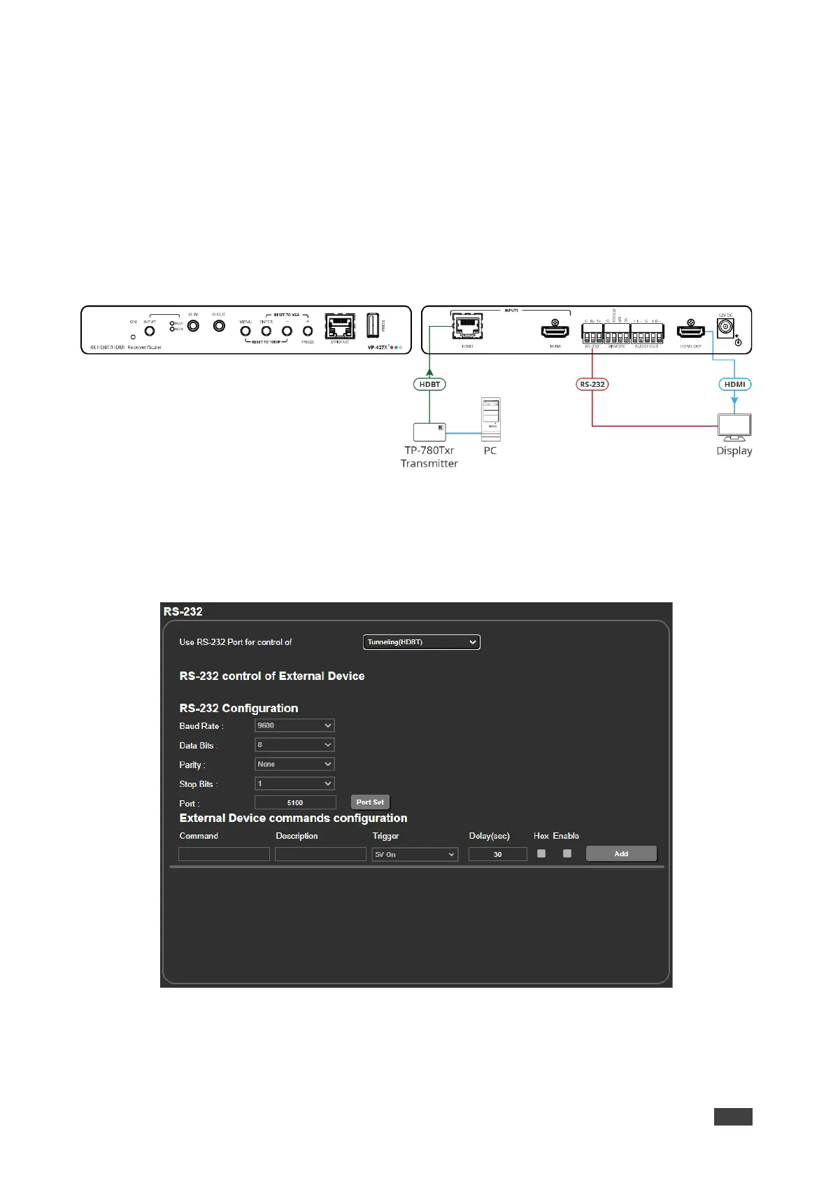 Figure 37: RS-232 Page – Controlling an External Device via HDBT Tunneling