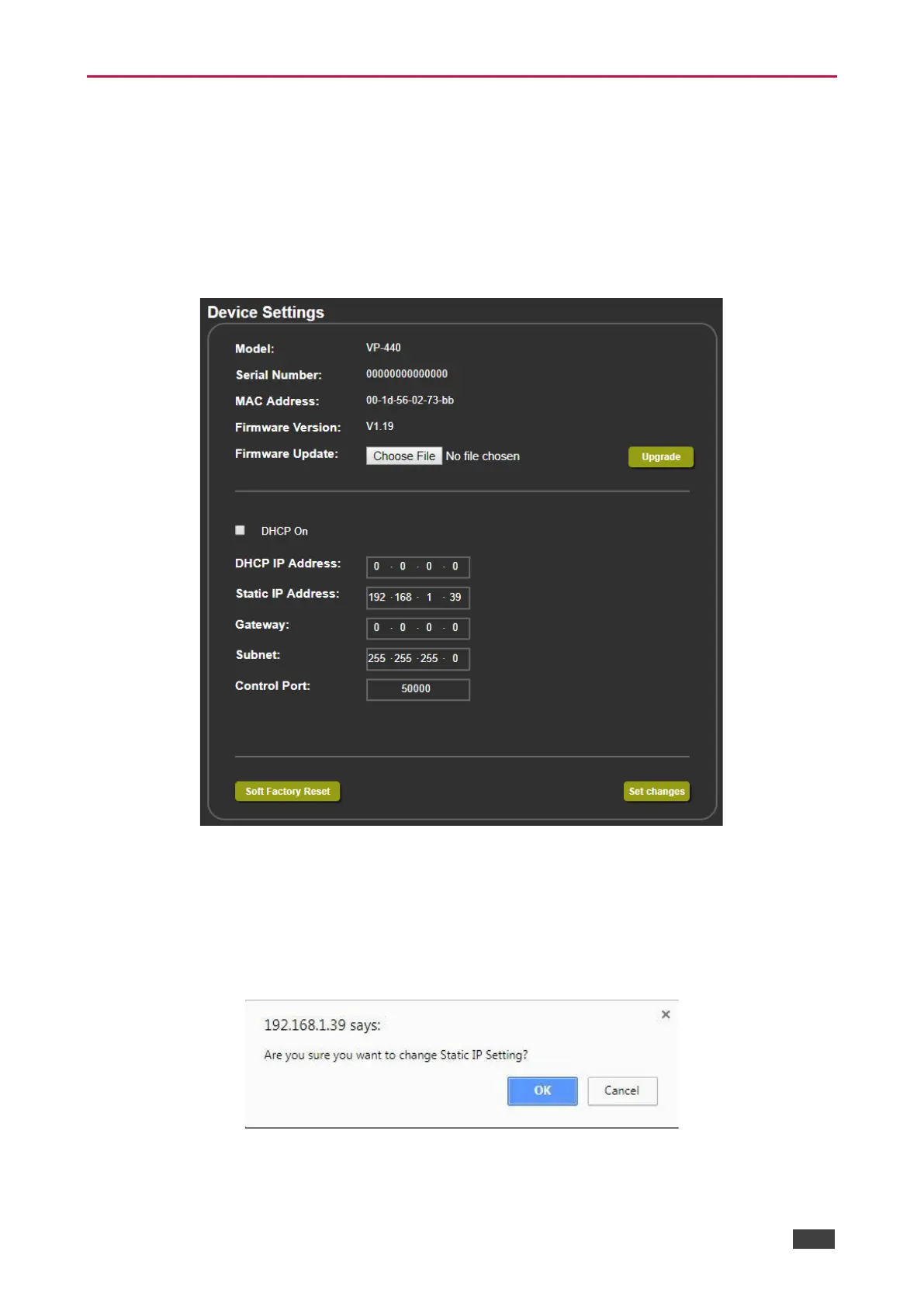 Figure 20: Device Settings Page – Setting Change Confirmation