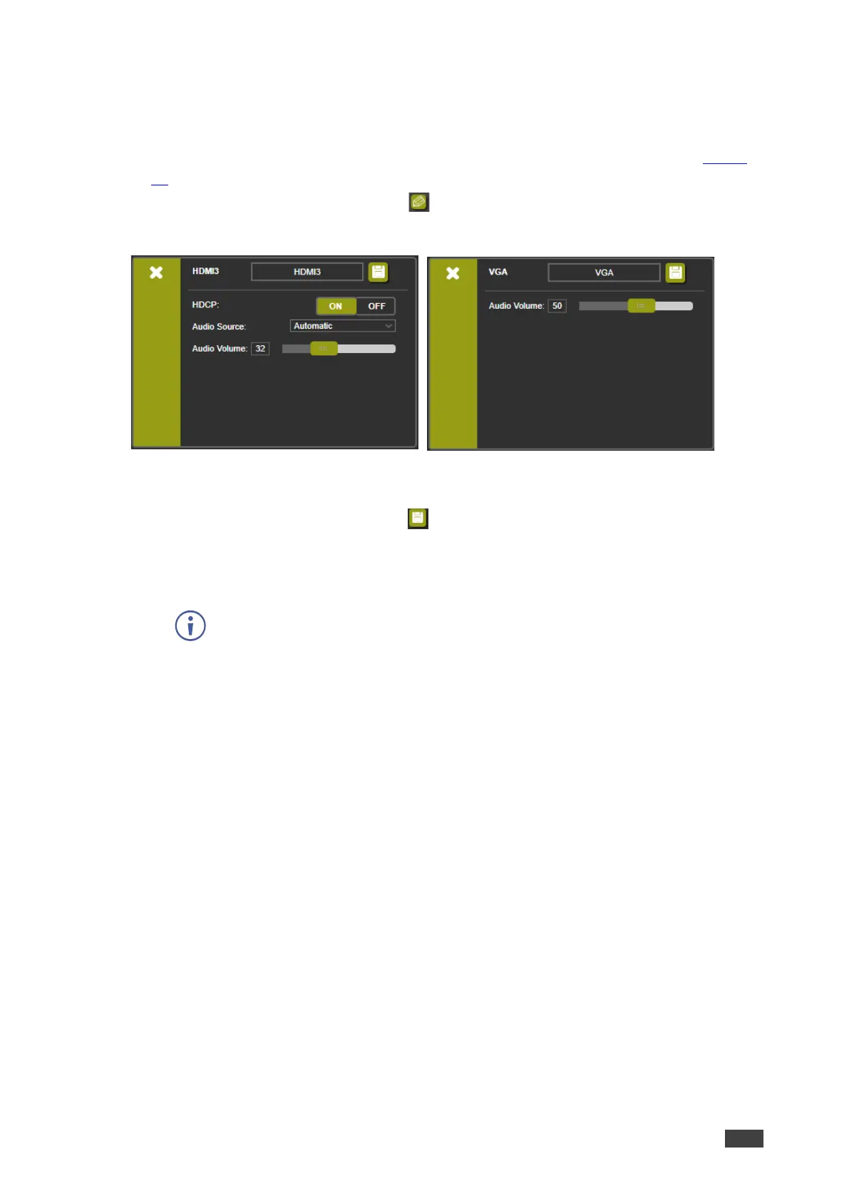 ▪ For HDMI inputs only, select an analog or embedded audio source or set input audio